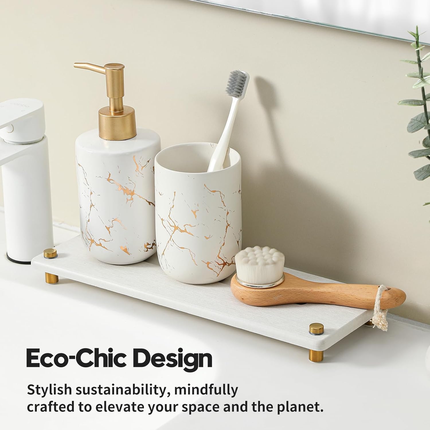 - ăChic Design Bathroom Counter TrayăA minimal and sophisticated look that matches seamlessly with any decor. Modern design with three simple straight lines, perfect for your kitchen or bathroom. You can put it on the table or by the sink countertop.