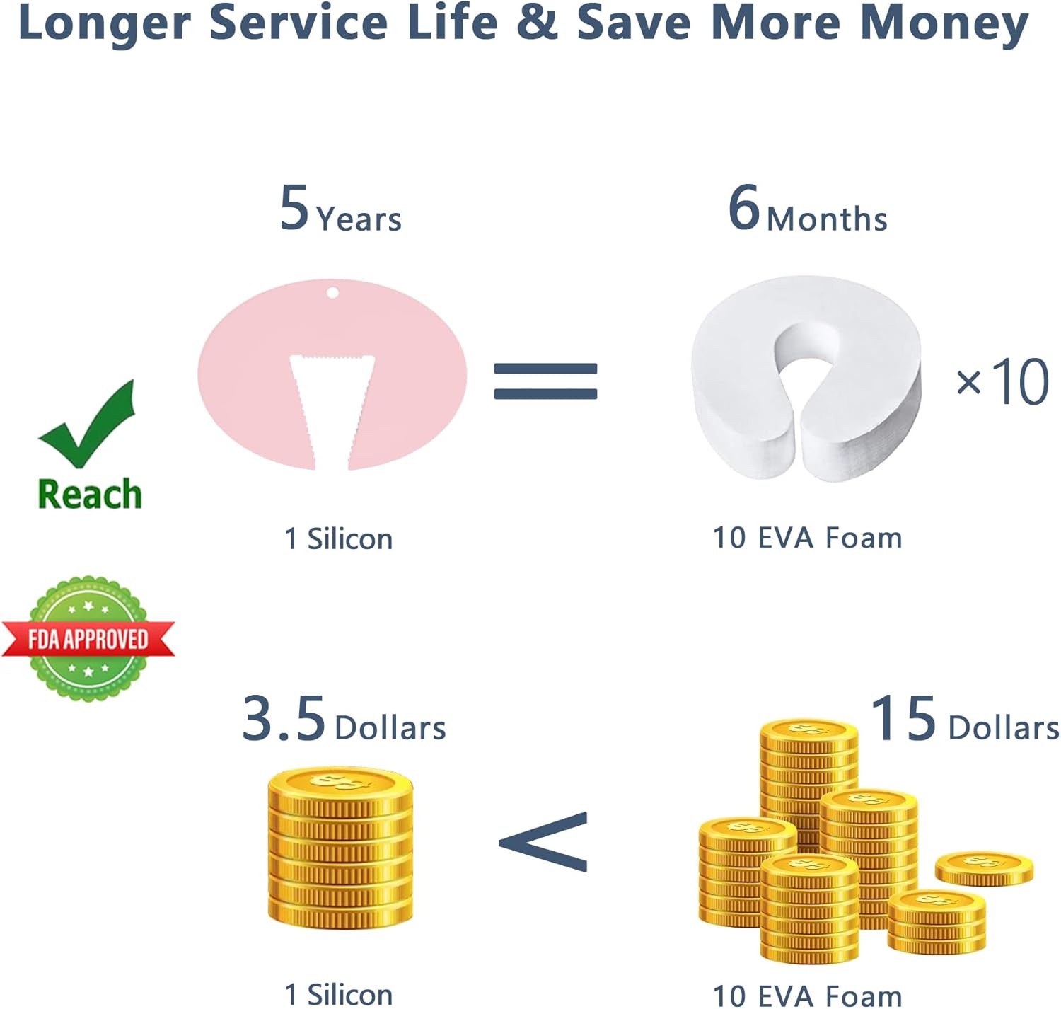 - Super Long Service Time: Neobay baby proof door stopper is made from durable silicone which can serve up to 5 years, about 10 times longer than foam door stopper. Perfect for continuously protecting the little hands and fingers of your baby, toddler, or child from getting pinched or jammed due to a door closing.