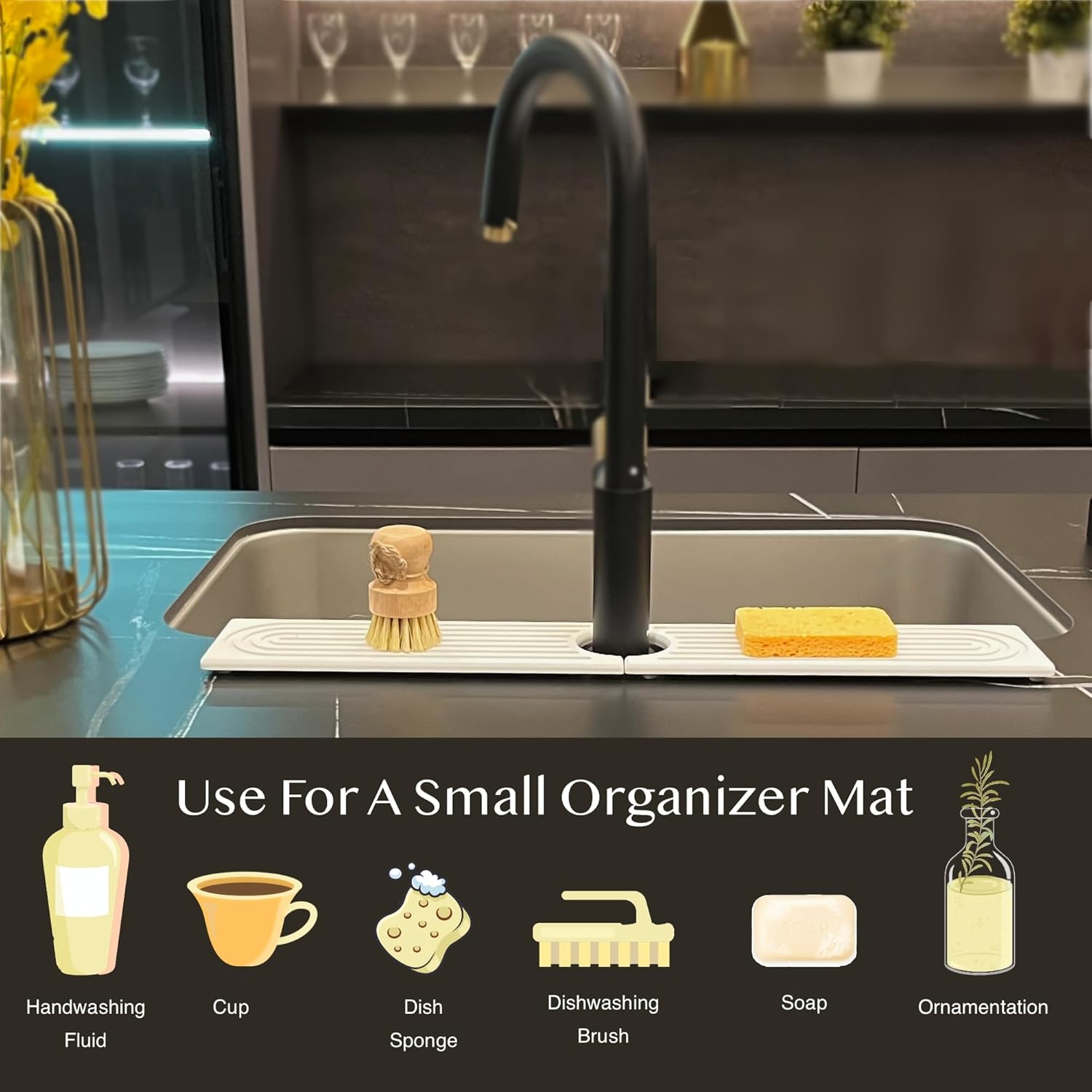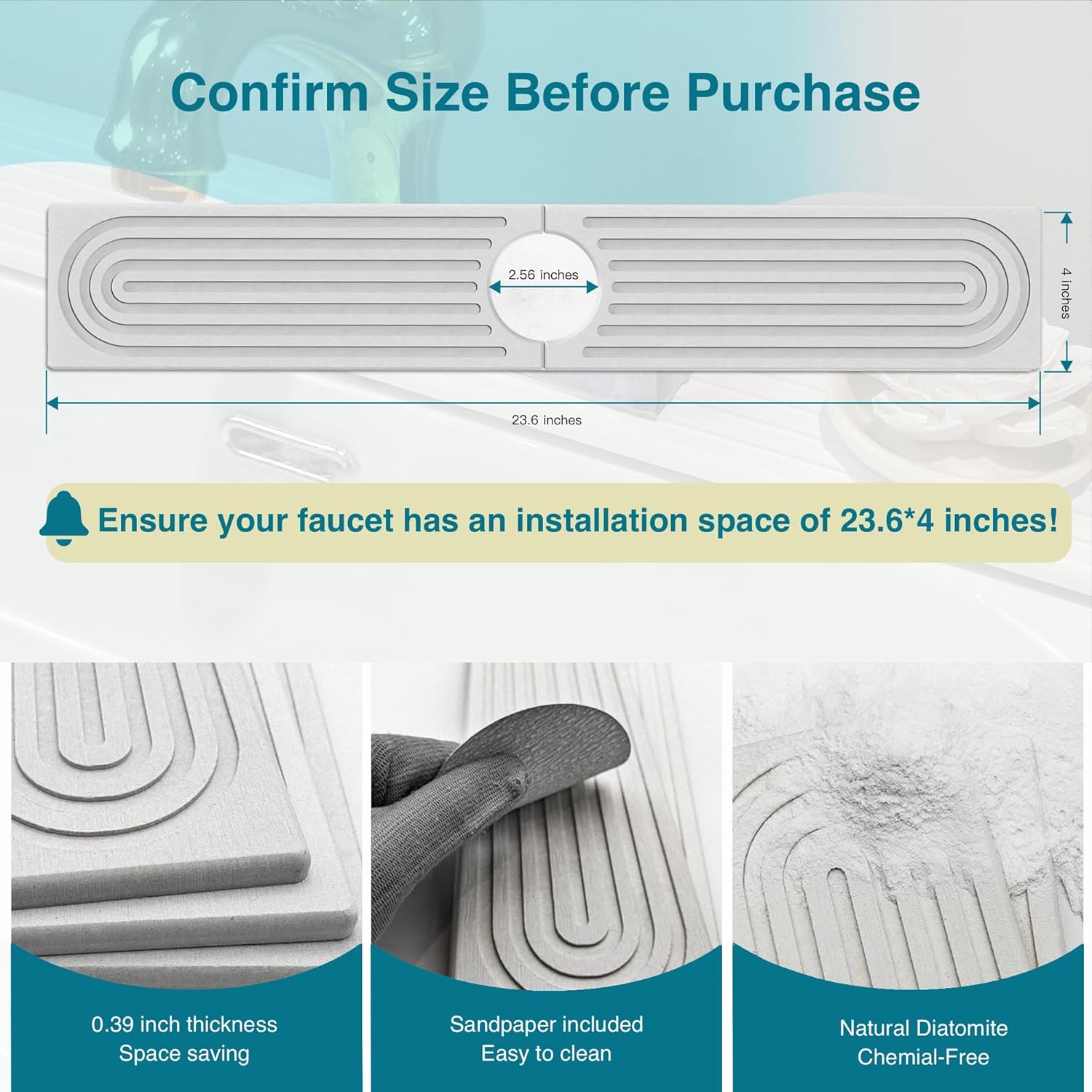 - Drying Fast: Our Faucet mat for kitchen sink is crafted from natural diatomacues earth. The diatomite stone's small holes enable amazing water absorption, quickly soaking up splashes and self-drying within minutes. Say goodbye to annoying drips and keep everything dry.