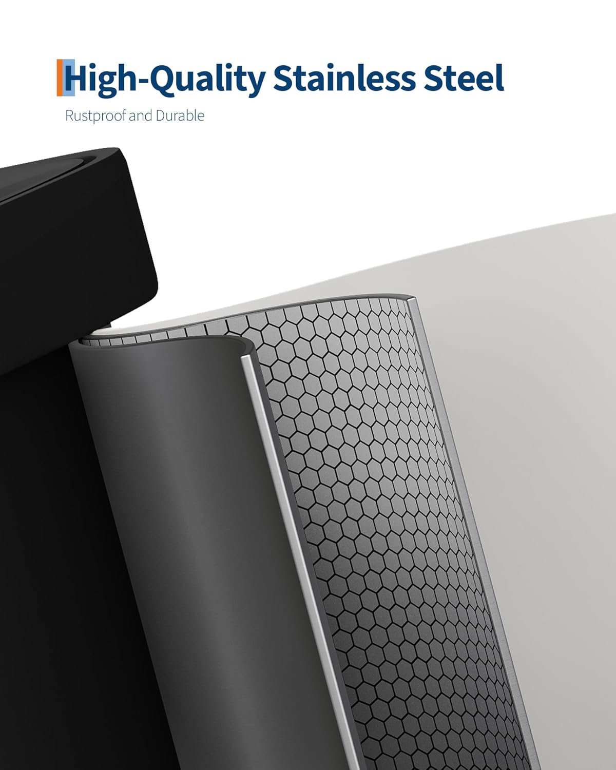 - [MINIMAL FORM, EXQUISITE DETAIL] – The Garvee powder coated metal garbage can for kitchen features a fingerprint-resistant finish that stays smudge-free and wipes clean with a soft cloth. An integrated liner rim hides bag edges for a seamless silhouette, while anti-slip rubber feet keep the bin stable on tile, hardwood, or low-pile carpet