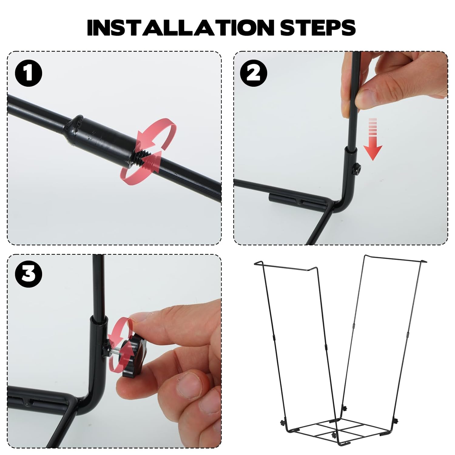 - Stable & Secure Frame: Built with a heavy-duty metal structure and a cross-shaped base, this garbage bag stand stays firmly in place. Four included clips tightly secure the bag edges, preventing slipping or blowing away during outdoor cleanup