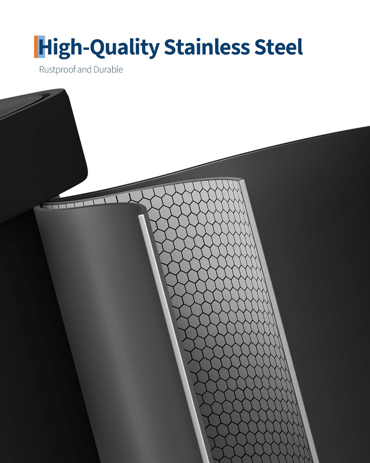 - [HIGH-QUALITY MATERIALS] – The Garvee large trash can with lid is engineered for longevity. Its powder coated metal shell resists rust, scratches, and maintains lasting luster. A thick ABS lid stands up to dents, stains, odors; its industrial steel pedal endures 150,000+ steps and the one-piece ABS hinge survives over 300,000 open/close cycles
