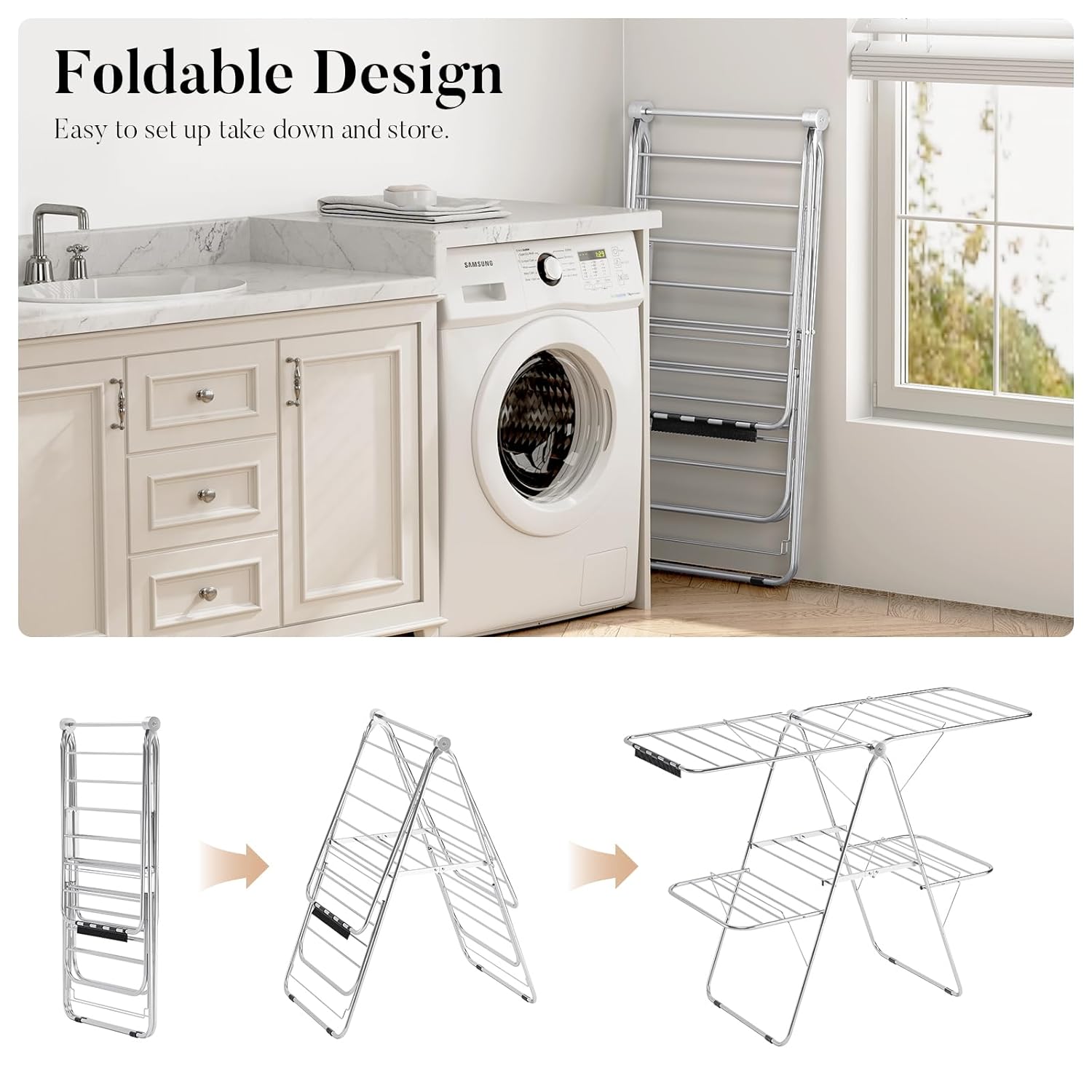 - Ready to use: This drying rack comes fully assembled. Just unpack and unfold it, and it's ready to use—saving you time on setup, so you can easily hang your clothes to dry.