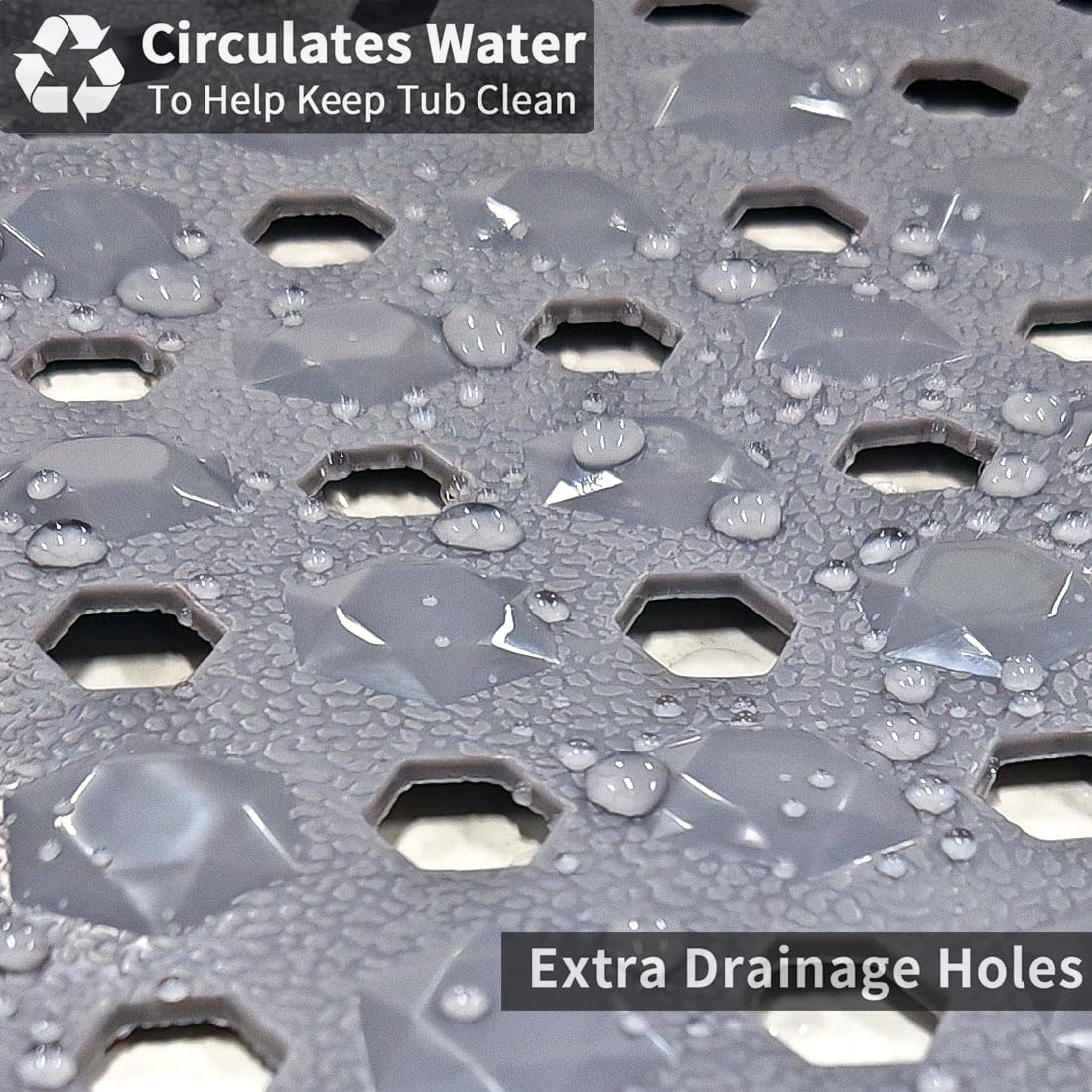 - 【RAPID DRAINAGE CHANNELS】- Stay Dry & Hygienic, No More Standing Water: Engineered with efficient drainage channels, our non slip bath mat allows water to flow freely underneath and away. This prevents messy puddles, minimizes soap scum buildup, keeping your bath mat for tub non slip cleaner, drier, and more hygienic for longer