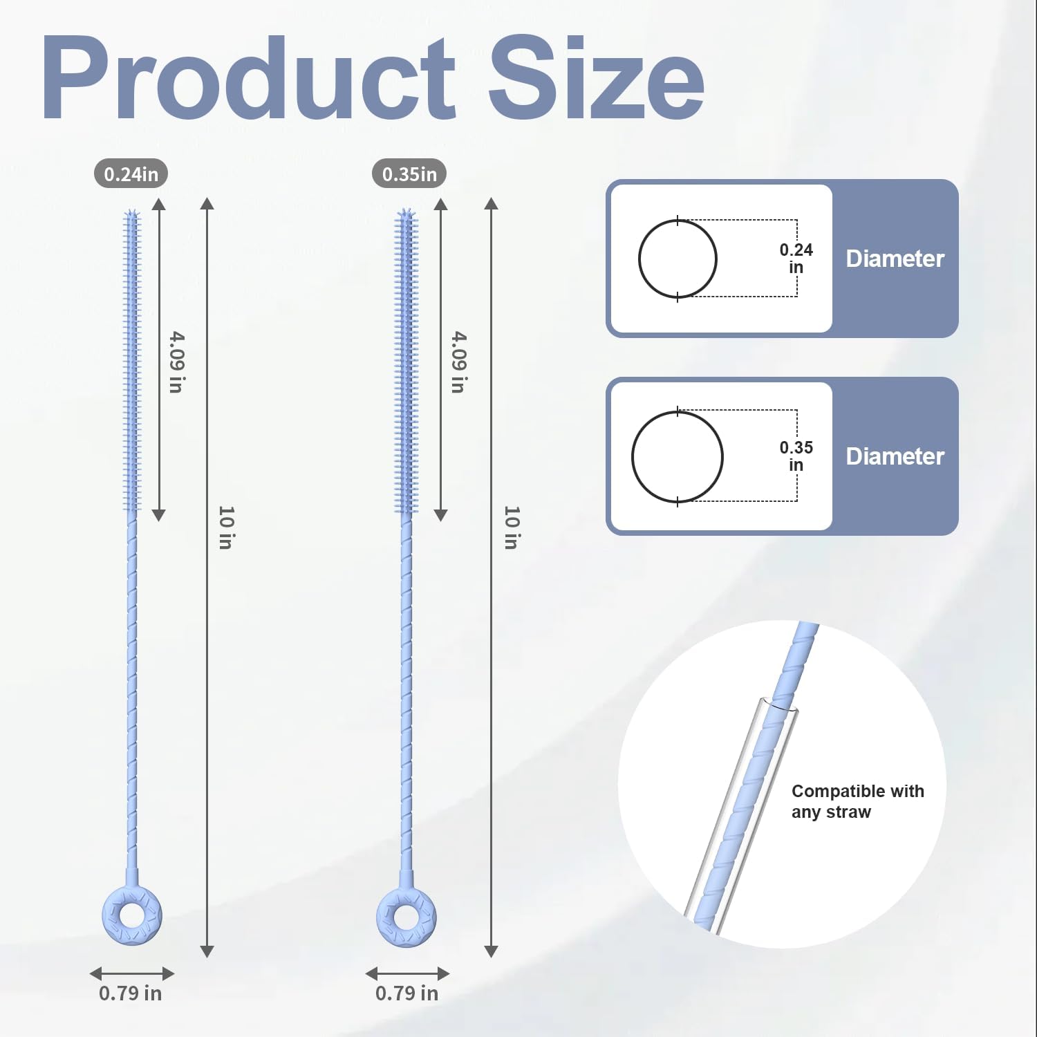 - Multi-Scenario Application: This silicone straw cleaner brush set features 0.24" (6 mm) and 0.35" (9 mm) diameters, 10" (254 mm) long, designed to perfectly clean both narrow reusable straws and wider straws, reaching deep inside to remove residue and grime.