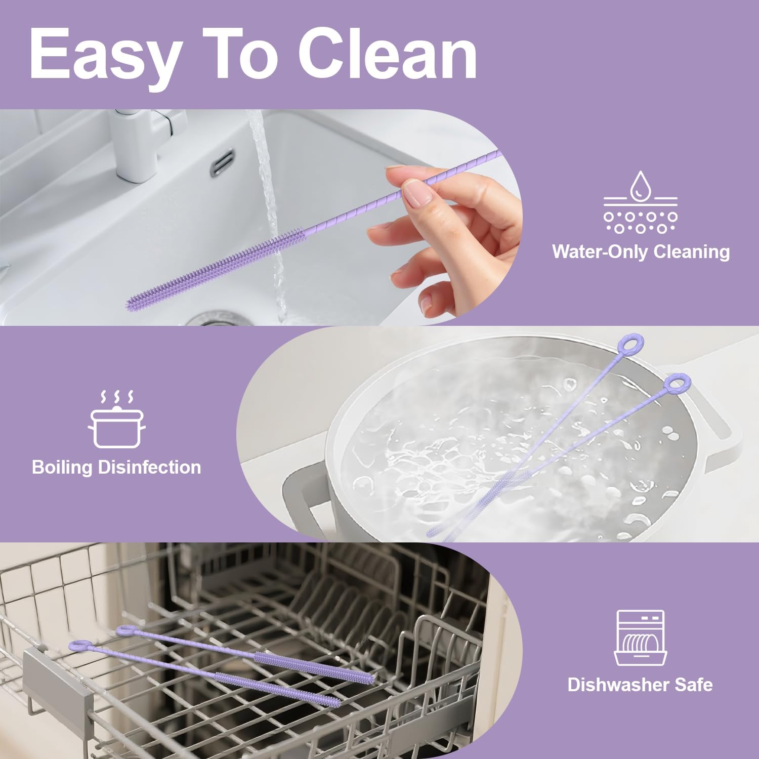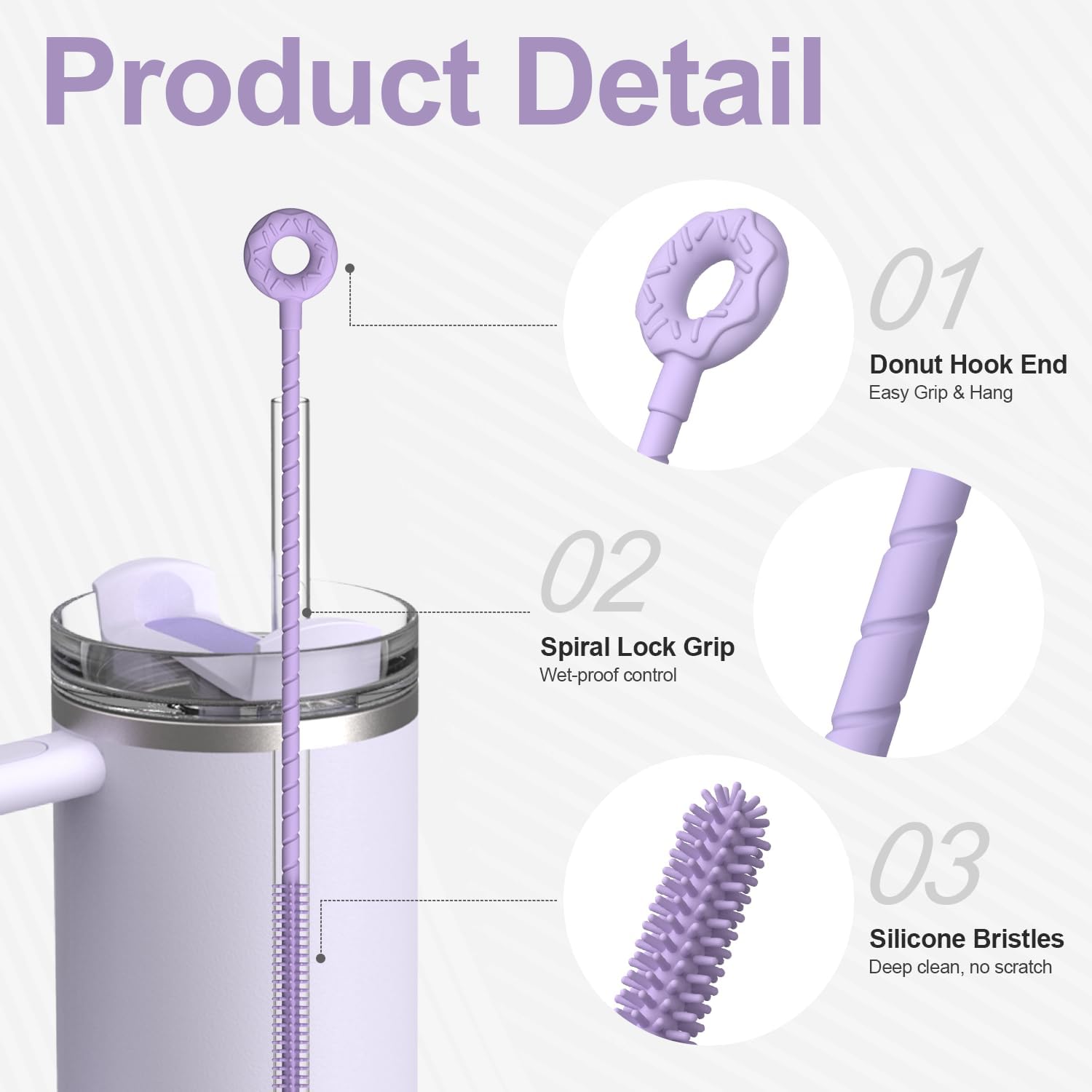 - Safe & Durable Silicone Bristles: Made from high-quality, food-grade silicone, BPA Free, our straw brush are gentle on straws (won't scratch) yet tough on buildup. The flexible Handle bend to scour every curve and corner for a thorough clean, and won't shed or break like bristle brushes.