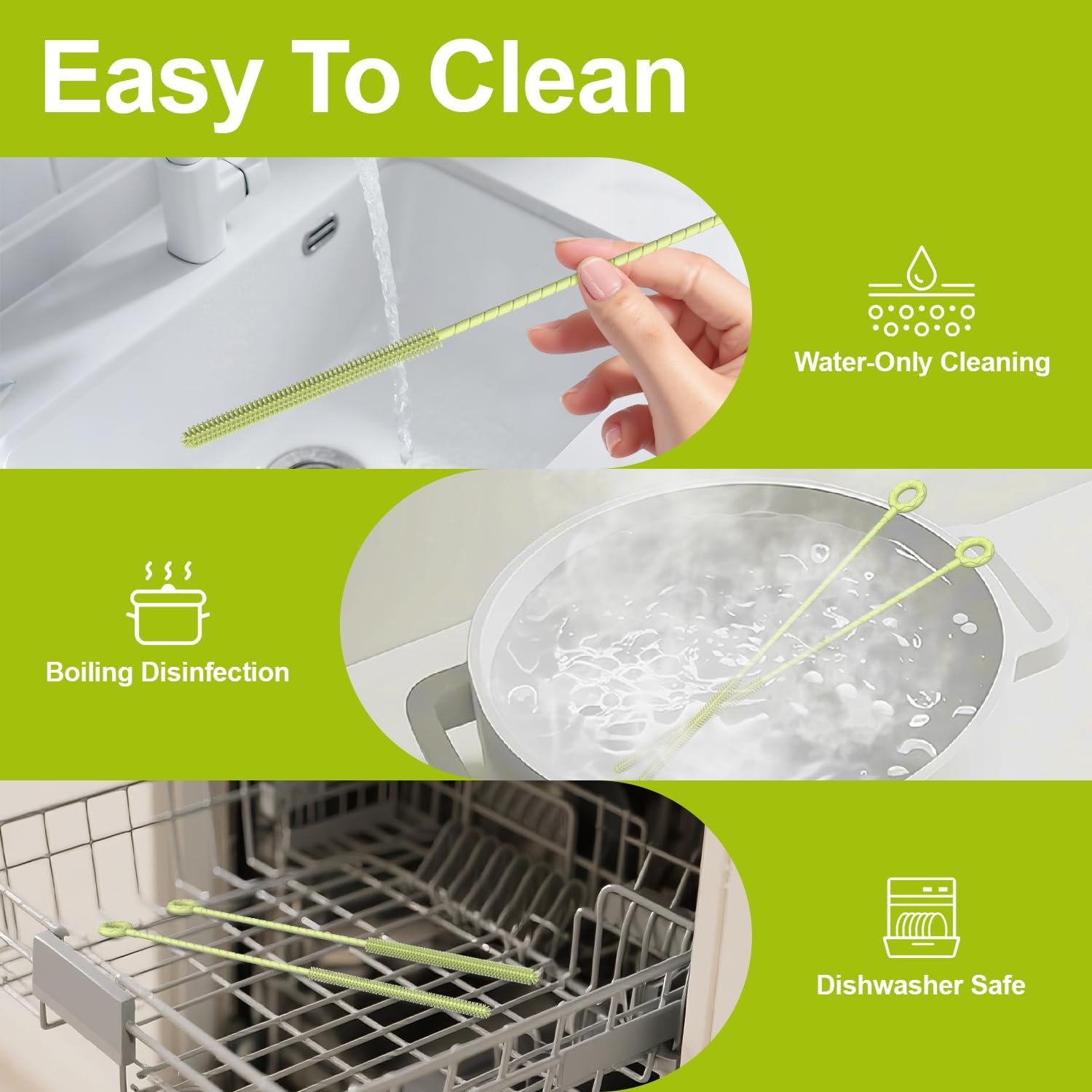 - Effortless Clean and Dry: Crafted from smooth, non-porous silicone, our silicone straw brush rinse clean in seconds under running water. The water-repellent surface dries incredibly fast, keeping the straw cleaning brush clean and hygienic – making them a cleaner choice compared to traditional brushes.