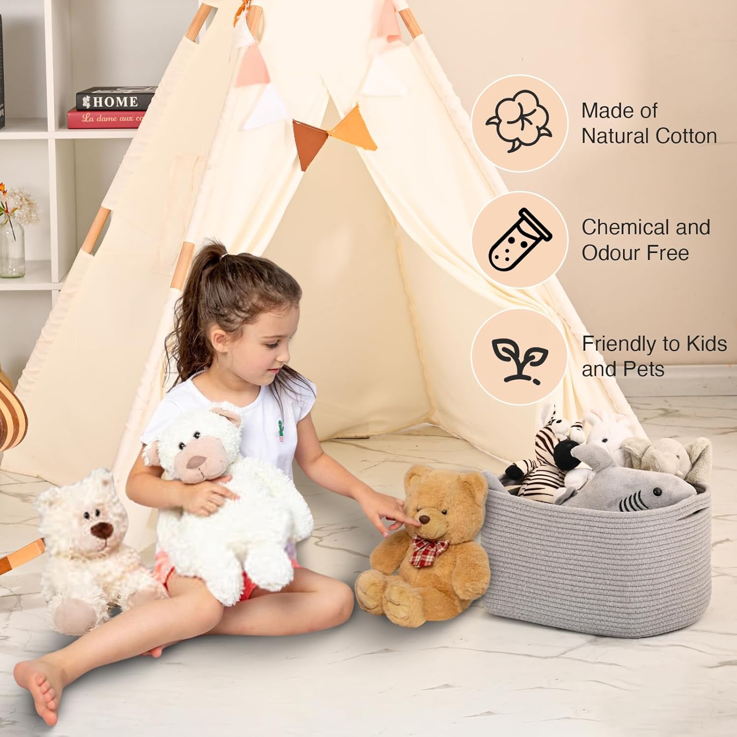 Woven Cotton Rope Storage Basket for Organizing, Cute Decorative Baskets for Gifts Empty, Organizer Bins for Dog Toy, Baby Laundry, 15“×11”×9.5“, Light Grey