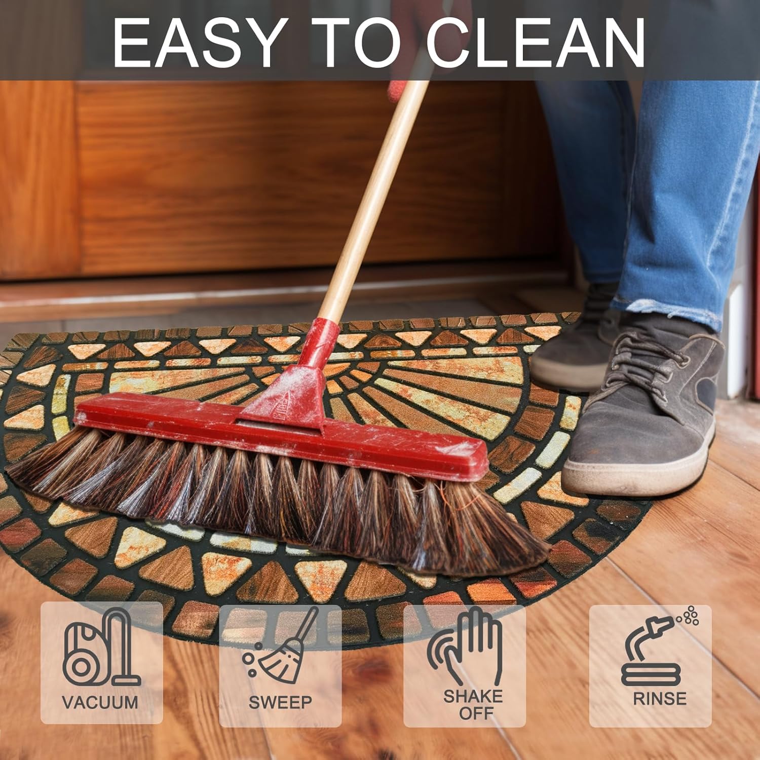 - Absorbs Moisture and Dirt, Easy to Clean: Unique fabric helps to trap dirt within its patterned grooves, muddy footprints are magically left behind; our doormats are easy to clean; you can simply sweep, vacuum, or hose it off