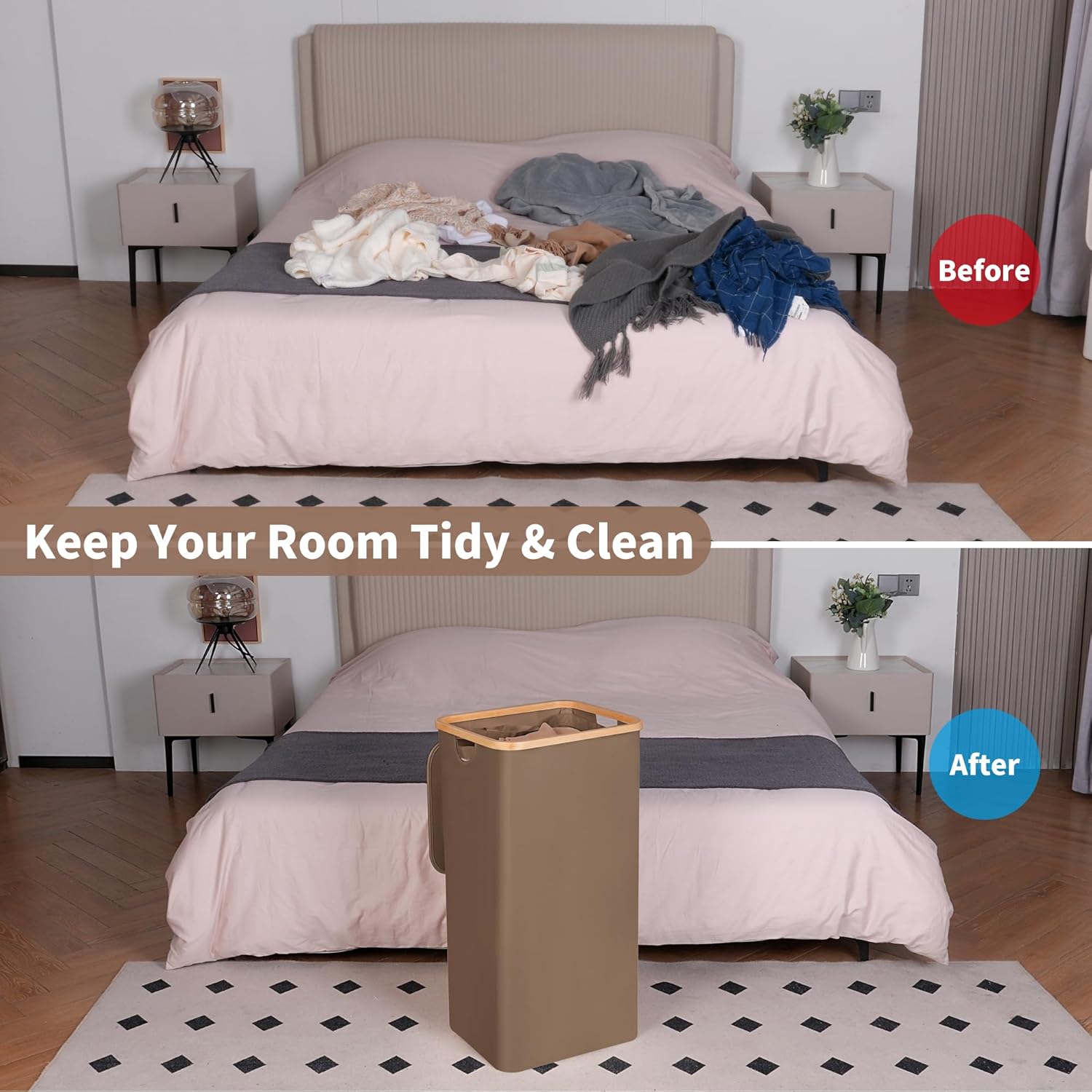 - Bamboo Handles & Removable Liner - Our laundry bin features smooth, splinter-free bamboo handles for easy carrying. The detachable inner bag allows quick sorting and machine washing, making laundry day effortless.