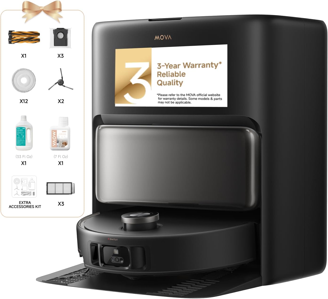 Mova V50 Ultra Complete Robot Vacuum and Mop Self-Cleaning, 24,000 Pa Suction, Liftable Navigation with Obstacle Overcoming and Warm Water Mopping with DuoSolution System Designed for Pets, Black