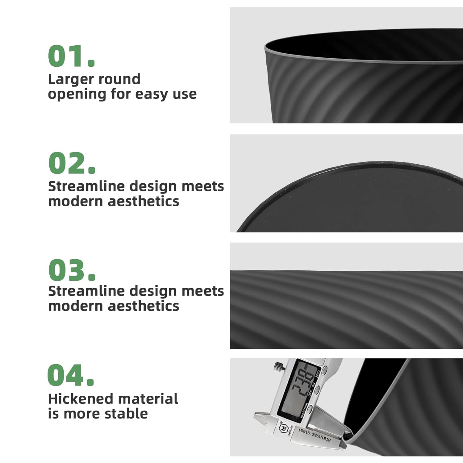 - đăSleek & Modern Curved Designă Upgrade your space with our stylish 1.8-gallon trash cans (6-pack), featuring a unique Curved look for a contemporary vibe. Perfect for bathrooms, bedrooms, offices, or kitchens, these bins blend seamlessly with any decor while offering durable, thickened PP plastic construction.