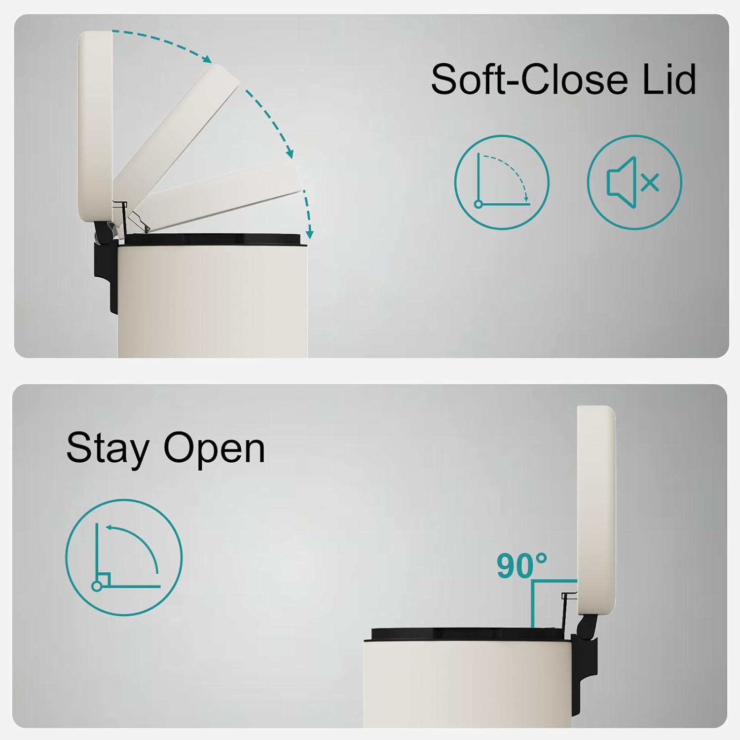 - ăNoiseless Soft-Close MechanismăSay goodbye to disruptive bangs! The gentle, silent-closing lid operates smoothly, staying open at a 90-degree angle for touch-free use while effectively sealing in odorsâideal for kitchens or office spaces.