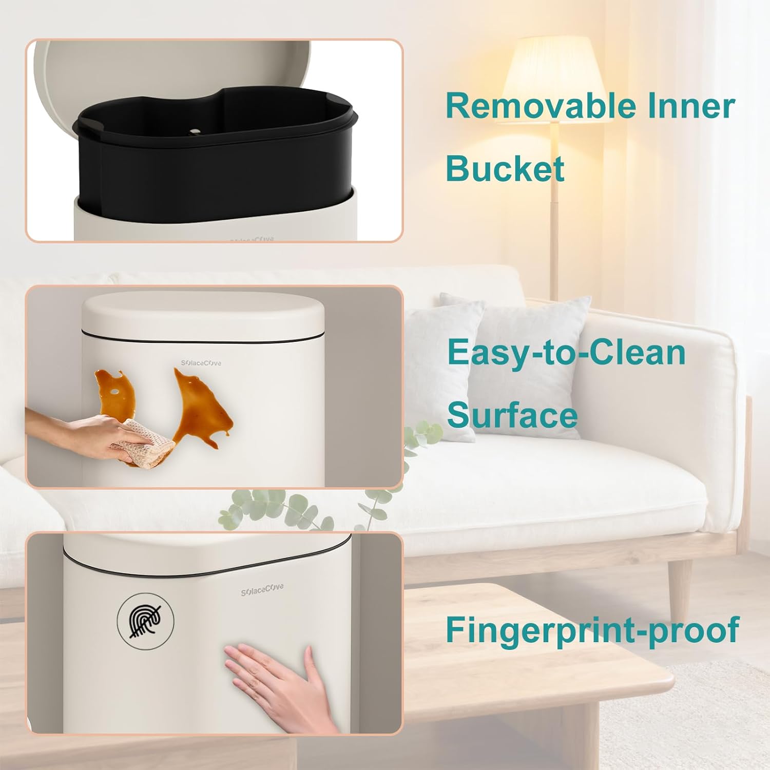 - ăDetachable Inner LinerăEquipped with a durable plastic inner bucket for effortless trash removal and leak-proof bag retentionâan essential feature for a reliable small trash can.
