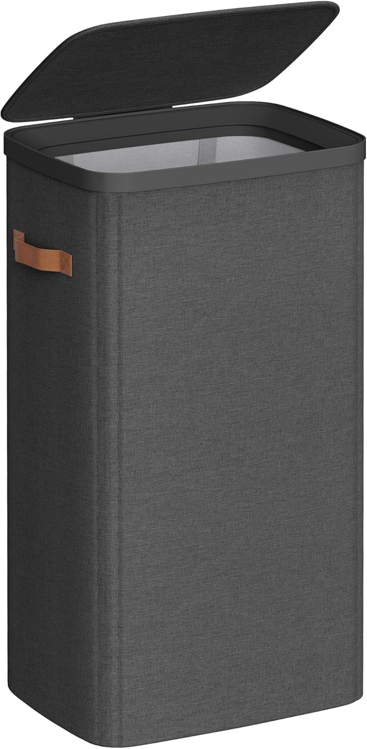 SONGMICS Laundry Basket, 26.4 Gal. Laundry Hamper, Easy Assembly, with Lid and Handles, Removable Liner, 16.5 x 12.6 x 29.5 Inches, Ink Black ULCB811BH01