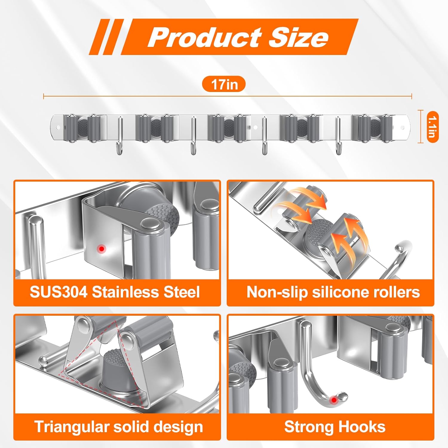- 【Unmatched Durability & Secure Hold】Our broom holder wall mount is engineered for longevity. Constructed from robust, rust-resistant materials, it far surpasses flimsy plastic alternatives. The integrated broom holder features high-elasticity, secure-grip clips ensuring your broom, mop, and other tools are held firmly in place, preventing drops. This broom holder wall mount heavy duty design reliably supports your cleaning essentials. The broom hooks and mop holder components are built to last.
