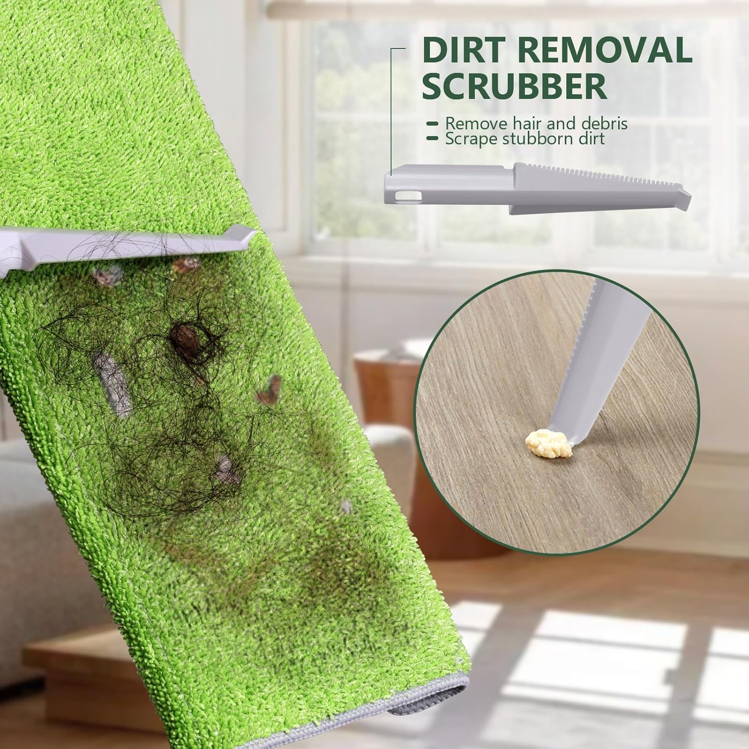 - 4 Double-sided Mop Pads: The flat floor mop comes with 4 double-sided mop pads. One side is made of microfiber and can be used for dry mopping, taking away stubborn stains. The other side is made of soft coral fleece and can be used for wet mopping for meticulous cleaning. Machine washable and reusable, saving you money. You can also use your preferred thick towel as a replacement mop pad.