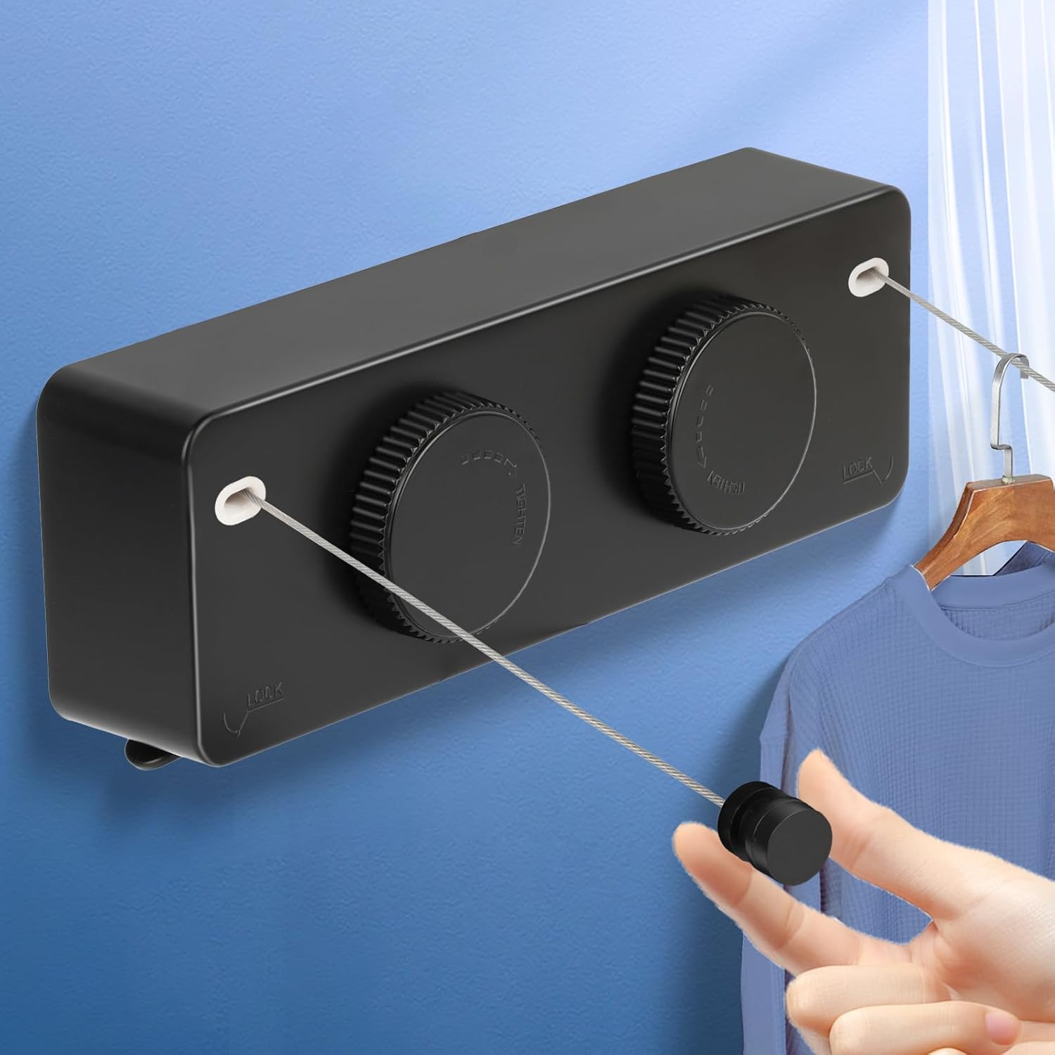 - 【Retractable Clothesline Indoor Outdoor Heavy-Duty】 Upgrade 304 Stainless Steel Clothes Line anti-sag design supports Single rope 40lb double rope use 70lb . Features a knob-locking mechanism for stable drying of heavy items like Outdoor Drying Rack Clothing blankets and jeans.