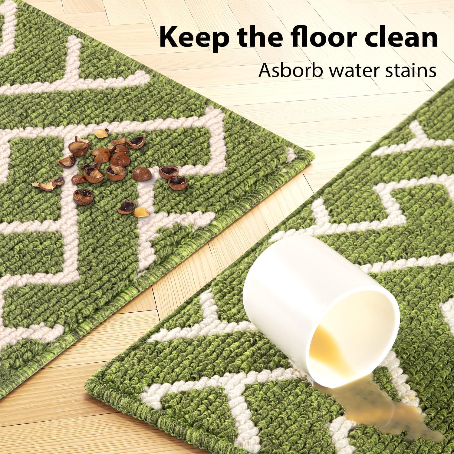 - Durable & NON-SLIP: Our Indoor Doormat is made of high-quality absorbent polypropylene fabric, uses double layer technology which absorb moisture and dirt from shoes quickly, makes your floors clean and dry. And the non-skid TPR rubber backing won't scuff floors, perfect for both indoor and outdoor use.