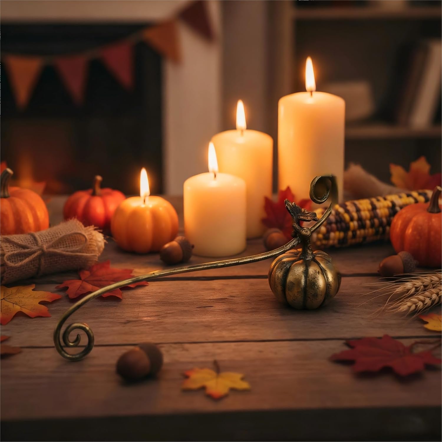- [Unique Pumpkin Design]This candle snuffer features a charming pumpkin shape with a delicate vine-style handle.It?s not just a tool?it?s a decorative piece that adds a whimsical touch to candlelit dinners, spa nights, or cozy evenings