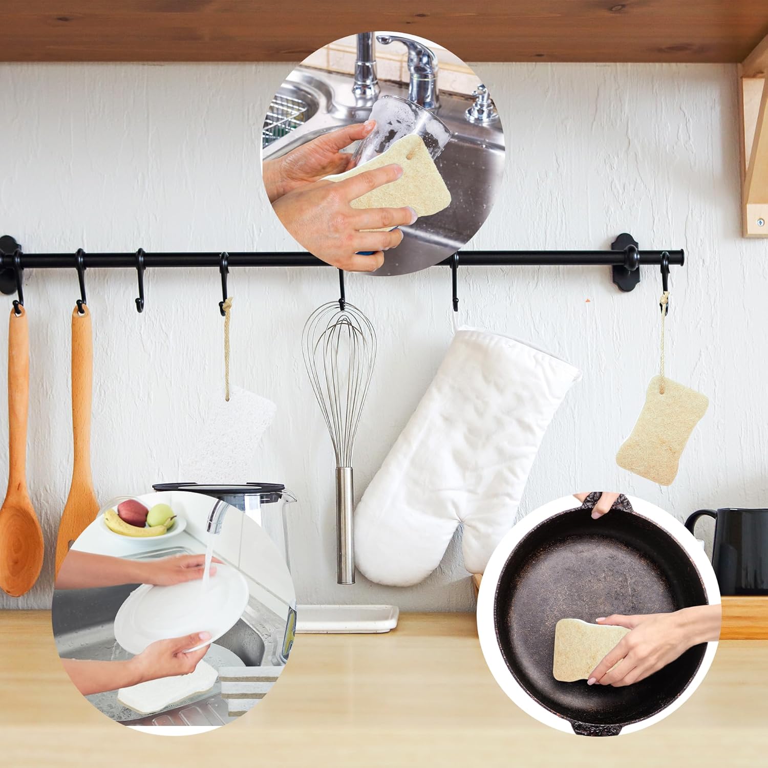 - Each sponge includes a practical jute cord for hanging after use, keeping it dry illness-causing compounds to breed