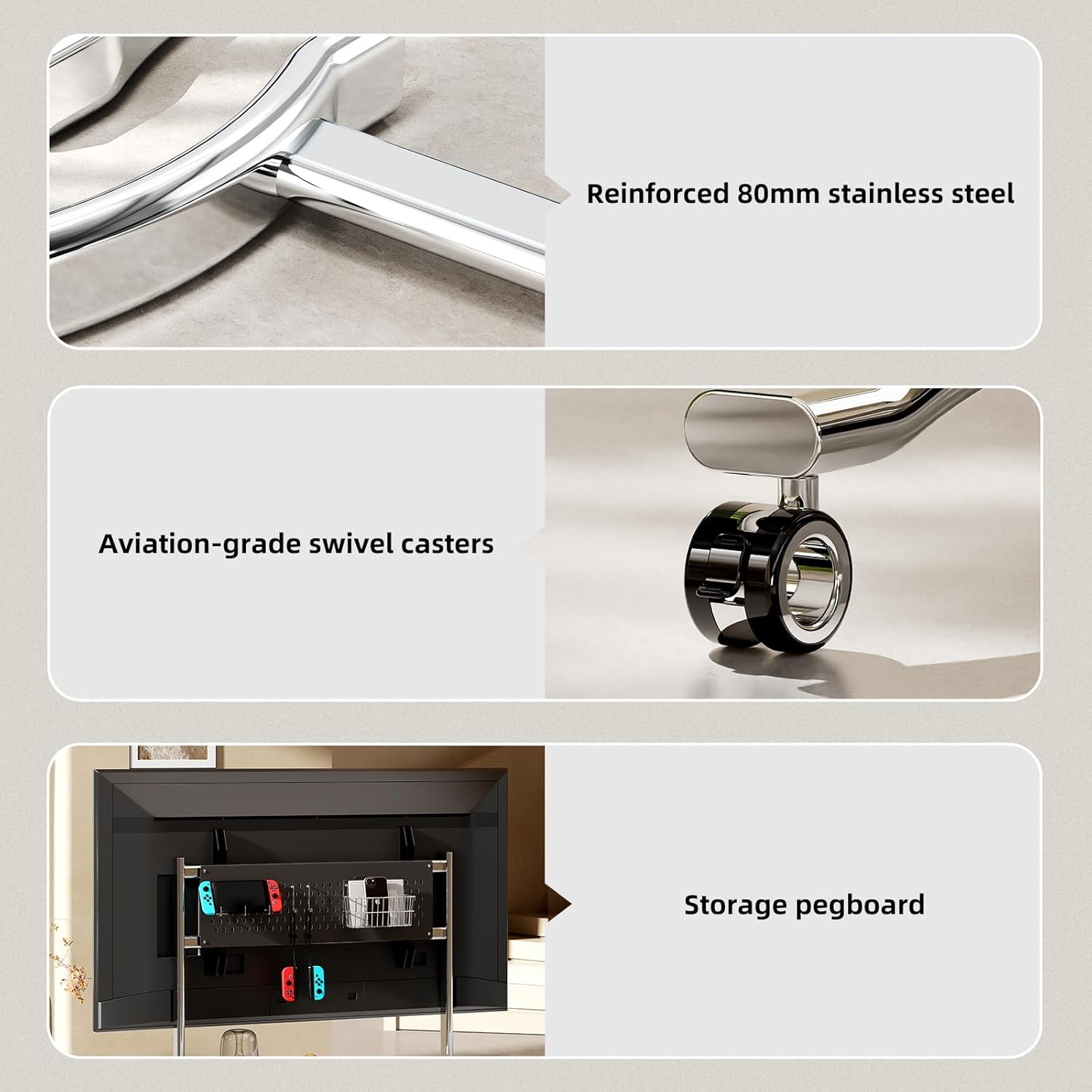 Stainless Steel Art Rolling TV Cart, Mobile TV Stand for 65-110inch TVs, Heavy Duty TV Stand with Wood Shelf&Large Storage Pegboard 220 lb. Load Capacity, Max VESA 1200x600mm (Style 1)