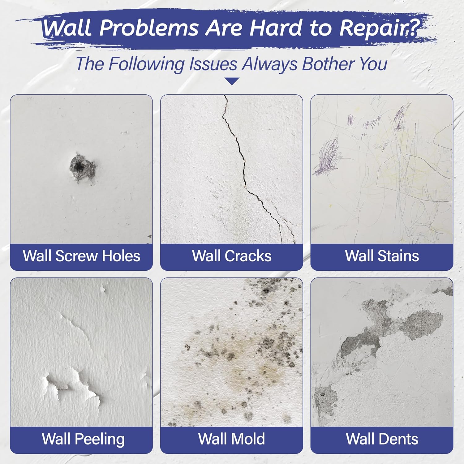 - Solves Multiple Wall Problems: Wall repair patch kit can effectively fix holes, dents, cracks, nail holes, peeling paint, mold, and graffiti on various surfaces, it is ideal for drywall, plaster, and stucco surfaces, both indoors and outdoors