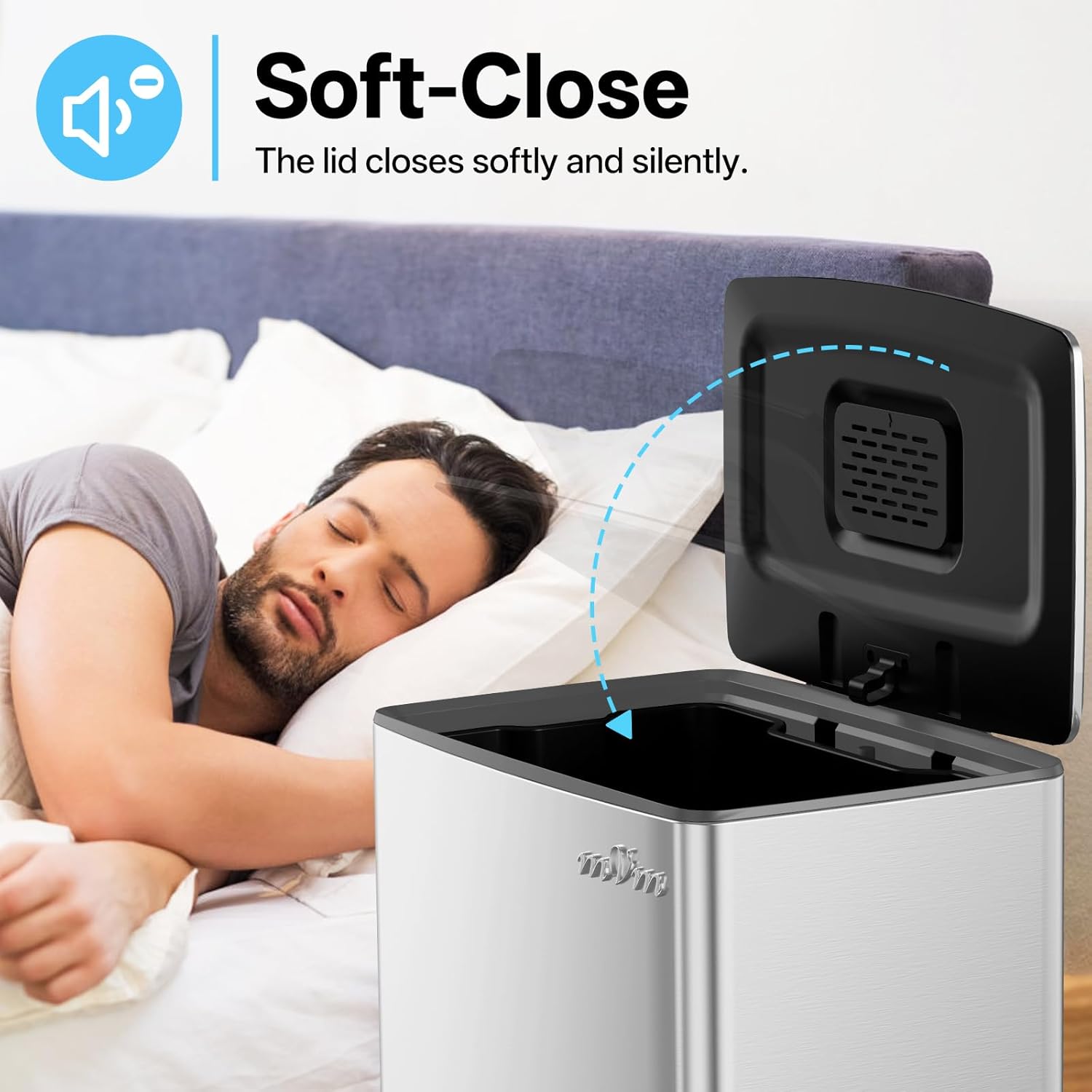 - Odor seal: The mVm trash bin is equipped with a carbon fiber filter that absorbs and neutralizes odors inside the bin, and the lid closes tightly to prevent odors from escaping.