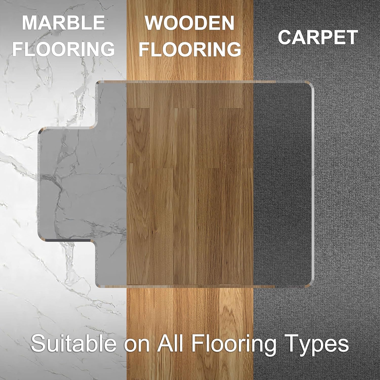 - 【Crystal Clearly】This clear office chair mats with lip transmittance is 92%-95% looks like invisible, which more than other material glass 85%-88%, and PVC 50-80%. lts almost complete transparency won't cover the floor decoration. It also beautifully displays and protects the floor below with its virtually transparent finish while remaining perfectly in place