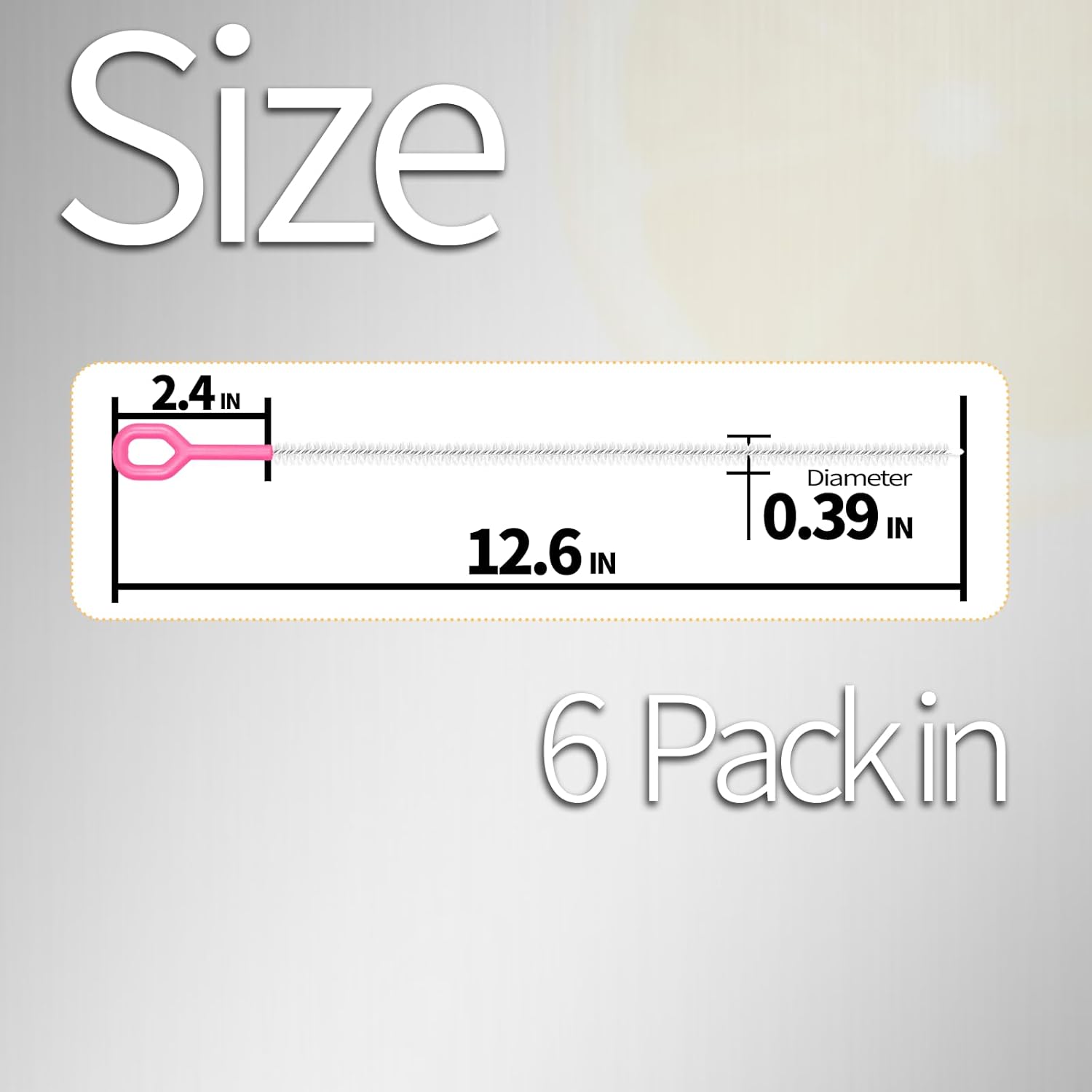 6 Pack Straw Cleaner Brush - 12.6" Extra Long Straw Cleaners Full Bristles Coverage with Different Sizes and Comfortable Handle for Reusable Drinking Straws,Bottle,Cup,Tube - 10mm Pink
