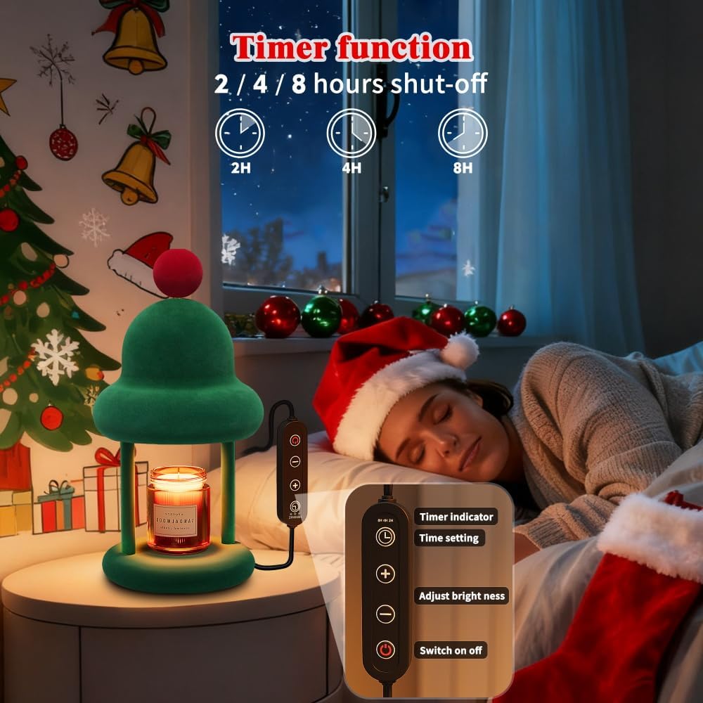 - 【Cute Candle Lamp Warmer】Inspired by Santa Claus's hat and made of comfortable flocking surface, compared with traditional burning candles, it can achieve no open fire, smokeless, no pollution and reduces fire risk.