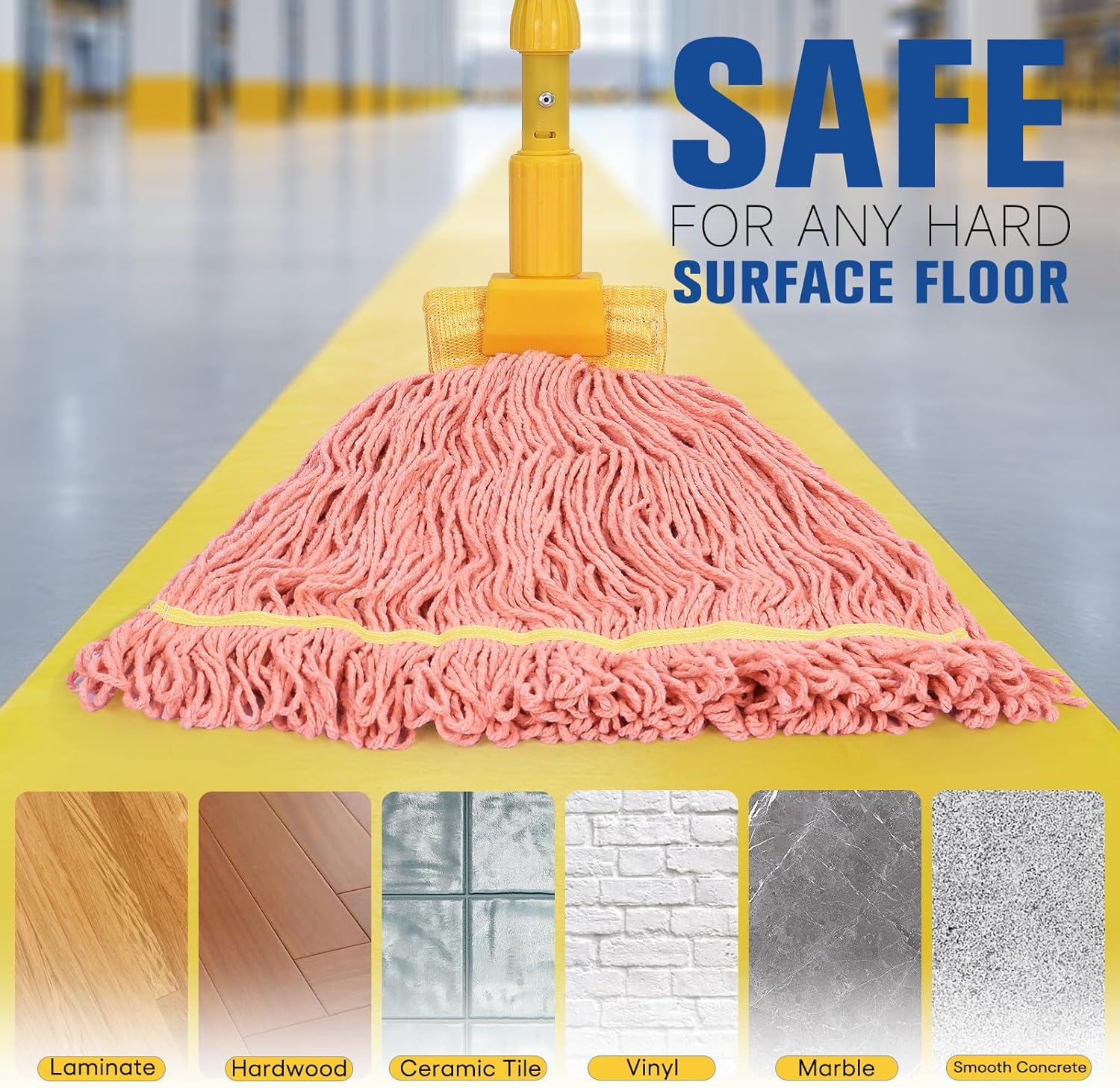 - Safe in Various Applications: This mop refill is safe to use on all hard surfaces for scratch-free, wet and dry mopping. Great for commercial, industrial, and residential use. The mophead replacement is perfect for any cleaning task including: industrial cleaning, janitorial, bars, hotels, restaurants, other food service establishments, and home environments.