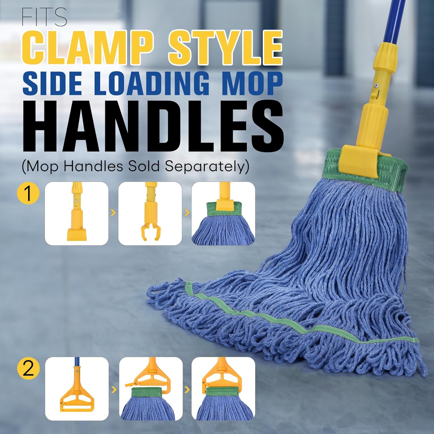 - 5" Wide Headband: The heavy duty mop head is universal and designed to fit with jaw clamp and side-mounted mop handles. (Mop handles sold separately). The heavy-duty stitched mesh headband resists moisture retention so the mop head can dry between uses.
