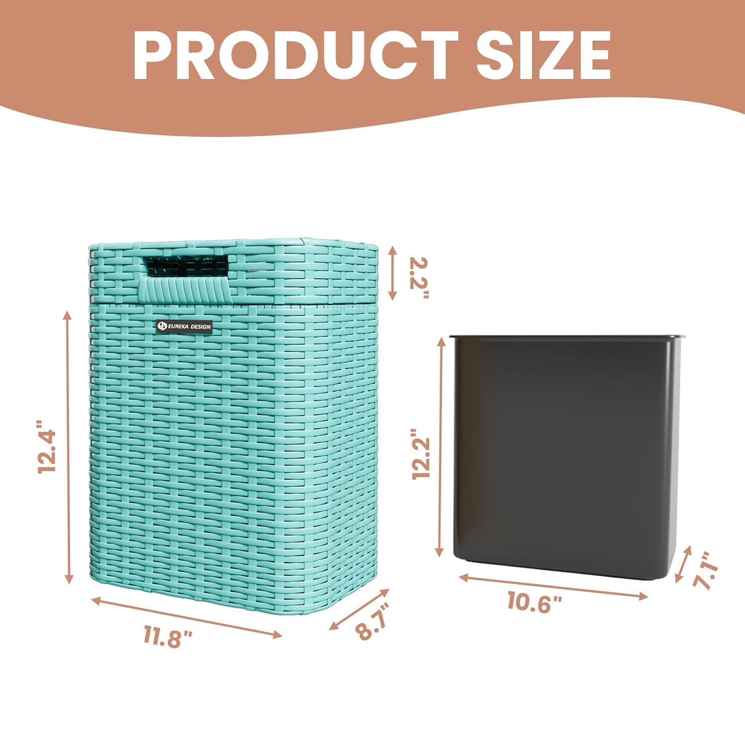 Ypati Handwoven 4 Gallon Rattan Trash Can with Lid, Boho Style Decorative Indoor and Outdoor Trash Bin with Shelf, Waste Basket for Bathroom, Kitchen, Patio, with Trash Bags, Turquoise Blue, Eureka