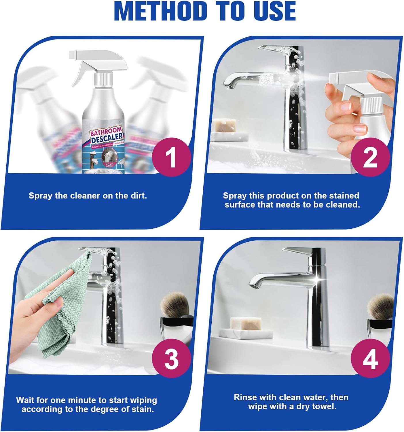 - 【Easy to Use】Multi-purpose bathroom descaling foam spray, multi-purpose kitchen foam cleaner, no need to rinse design, rich foam, just spray directly on the desired area, and then wipe with a towel or sponge.