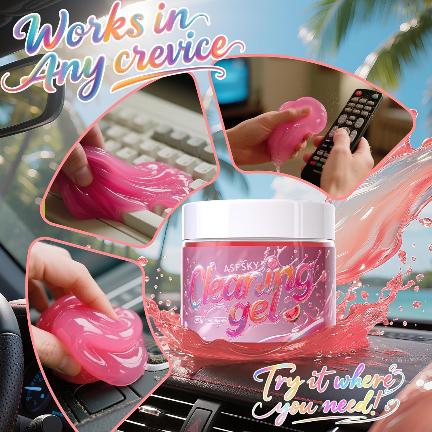 ASFSKY Car Cleaning Gel (Red,Watermelon) Cleaning Putty Universal Dust Cleaning Car Interior Cleaner Keyboard Dust Remover Car Slime Gifts for Men Women Girl(1 Pack)