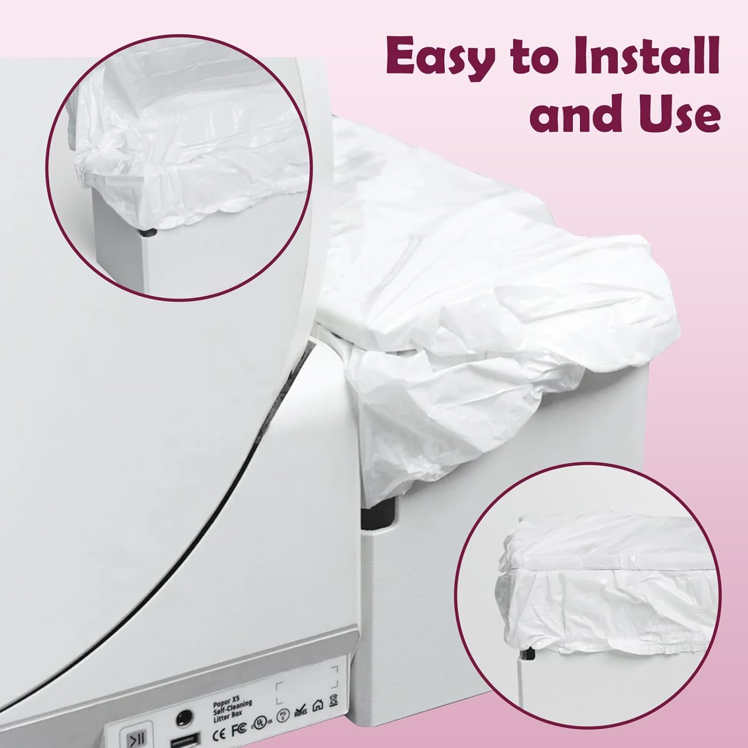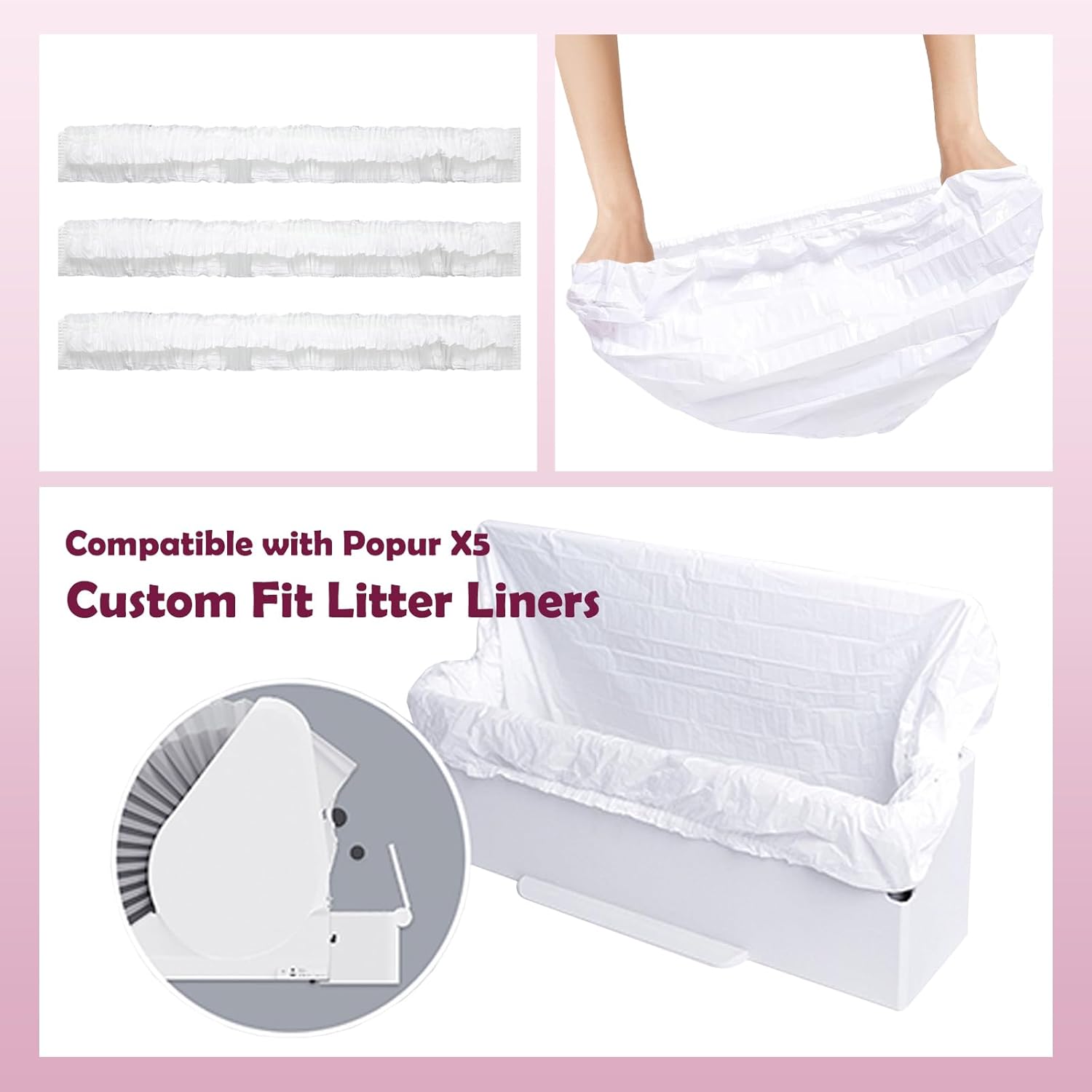 - PERFECT FIT FOR POPUR X5: Designed exclusively for the Popur X5 self-cleaning litter box, these elastic-band trash bags snap securely in place, preventing slips or spills. Ideal for hassle-free waste disposal.