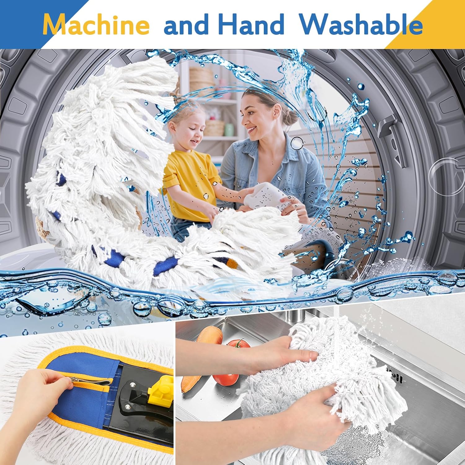 - 【Easy to Care and Install】: The unfolded mop refill pad measures 10.6" x 20.8" and fits a 15" mop frame. Its zipper design allows for easy installation and removal. The cotton yarn mop pad is machine washable and hand washable. Simply air-dry it after washing.
