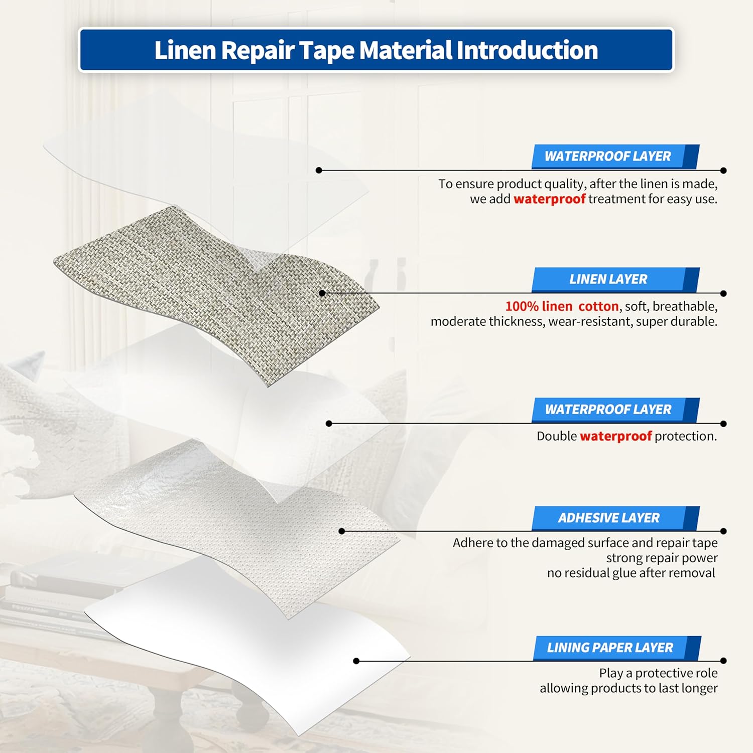 - Strong Self-Adhesive: The craftsmanship of the linen repair kit has been upgraded, using strong adhesive to ensure excellent bonding effect, specially developed for repairing various fabric products, ensuring that the repaired area can be used for a long time without easily falling off.