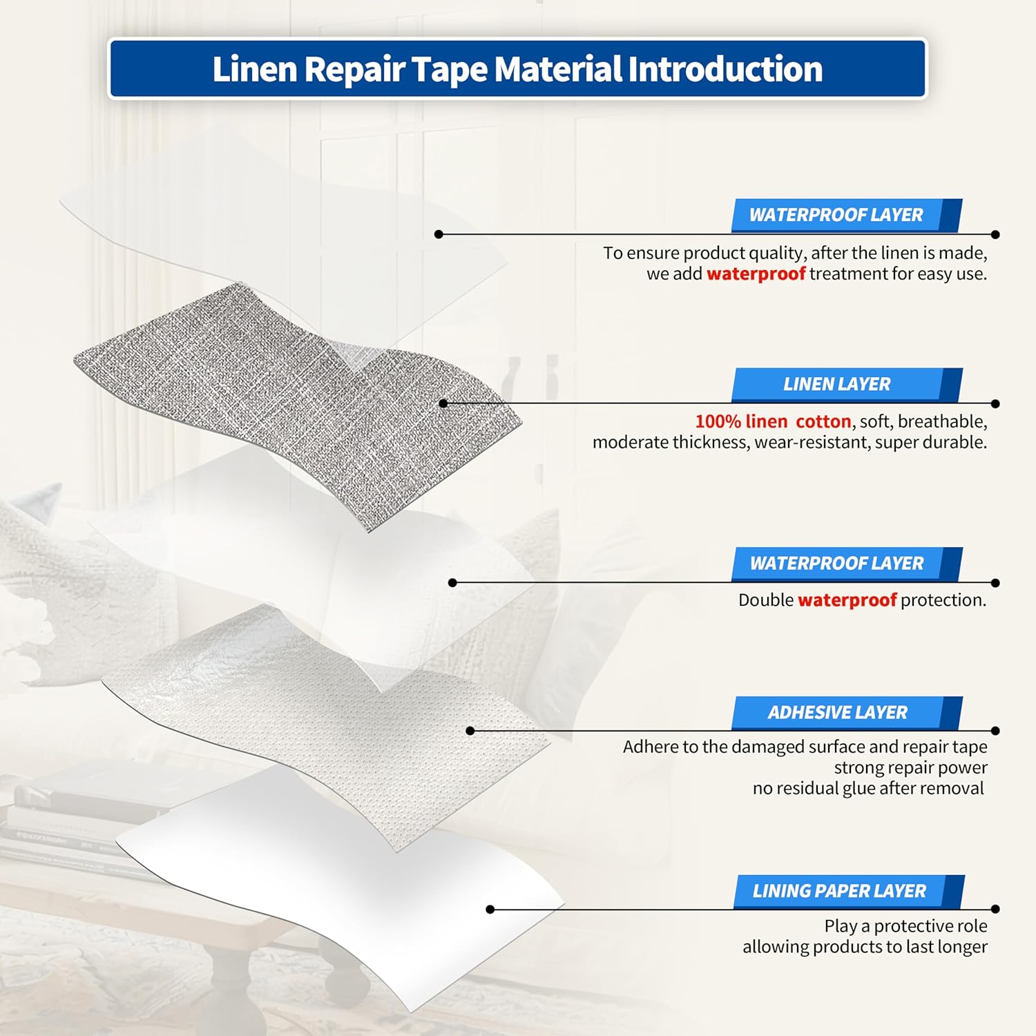 - Strong Self-Adhesive: The craftsmanship of the linen repair kit has been upgraded, using strong adhesive to ensure excellent bonding effect, specially developed for repairing various fabric products, ensuring that the repaired area can be used for a long time without easily falling off.