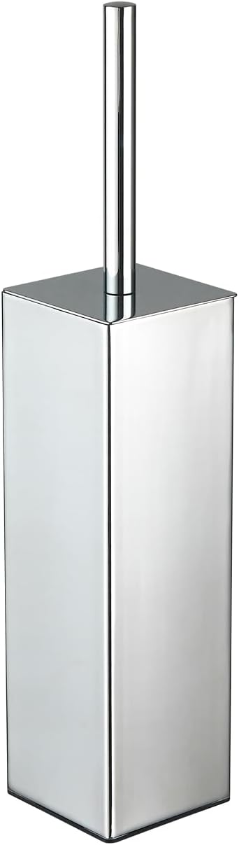 Chrome Square Stainless Steel Toilet Brush with Holder, 304 Modern Toilet Brush Set – Rust Resistant, Long Handle, Replacement Heads, Floor Standing Bathroom Toilet Cleaning Brush