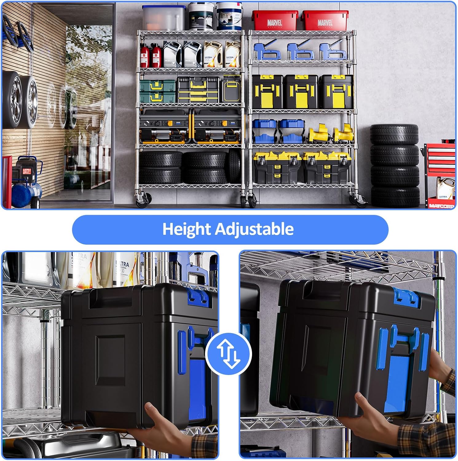 IZEUK 5-Tier Storage Shelving Unit with Wheels, Adjustable Heavy Duty Steel Wire Rack Organizer (Chrome, 17.7" D x 47.2" W x 76.7" H, 1750 lbs Capacity) for Garage, Kitchen, Pantry, Laundry, Basement