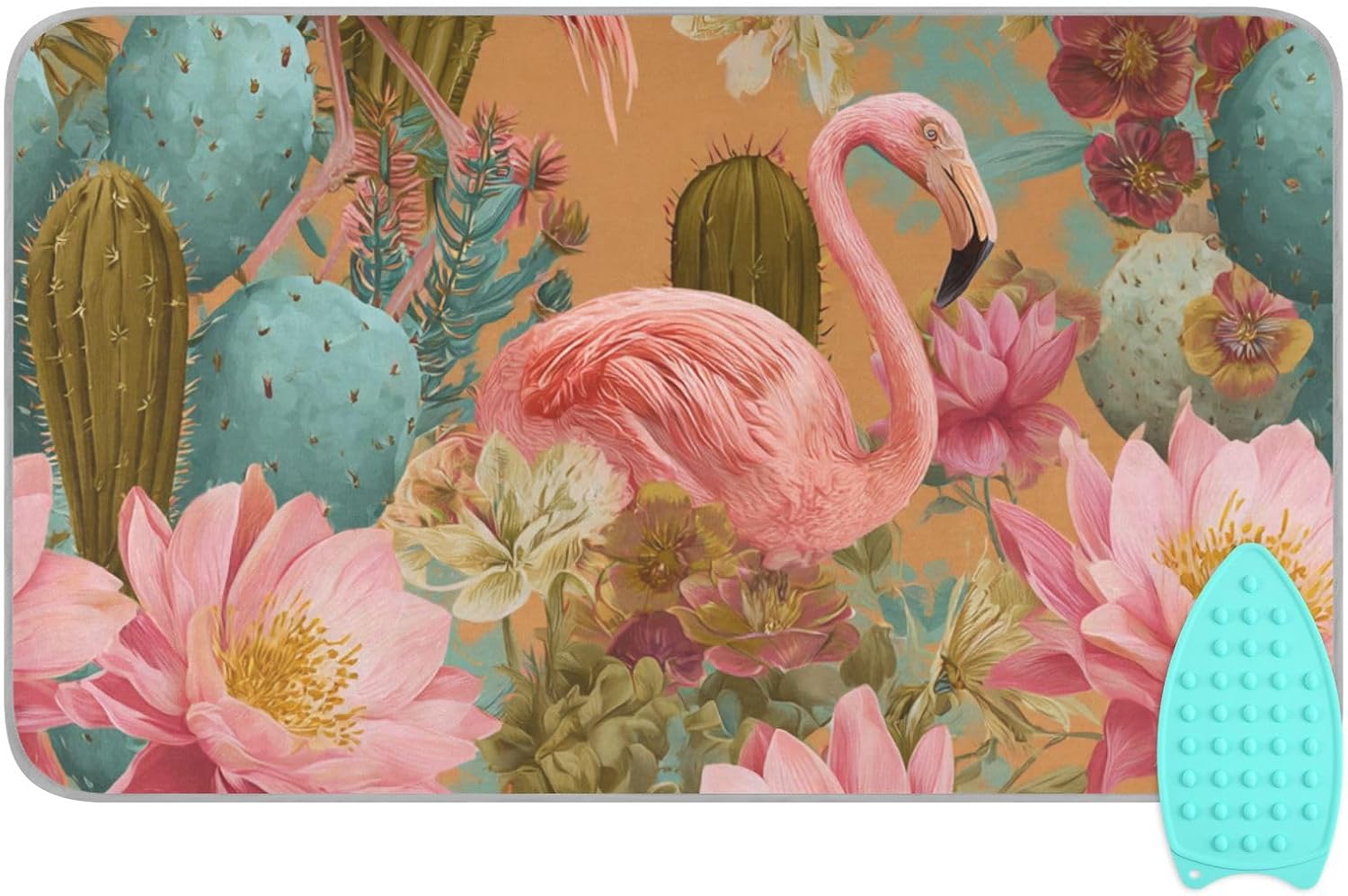 Ironing Mat Portable Ironing Pad Ironing Blanket for Table Top Heat Resistance Double-Side Using Travel Large 47.2 x 27.6 Inch Foldable Orange Flamingos and Green Cactus Flowers