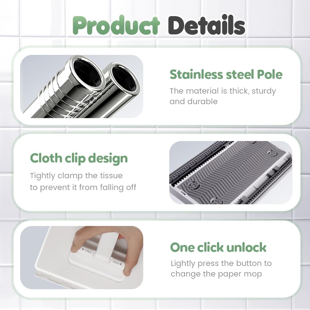 - ✨Easy disassembly and assembly: the rag and cleaning pad can be removed or attached with one button, convenient to change. Saving your time and keeping hands clean.