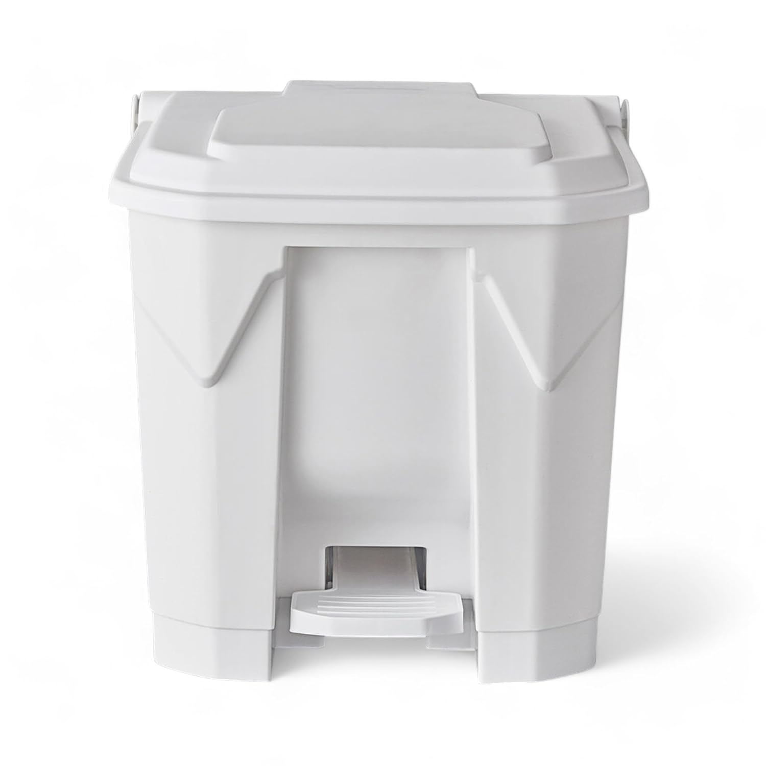 PRO&Family Step-On Trash Can with Lid, Plastic Waste Bin, Foot Pedal Operation (White, 8 Gallon)