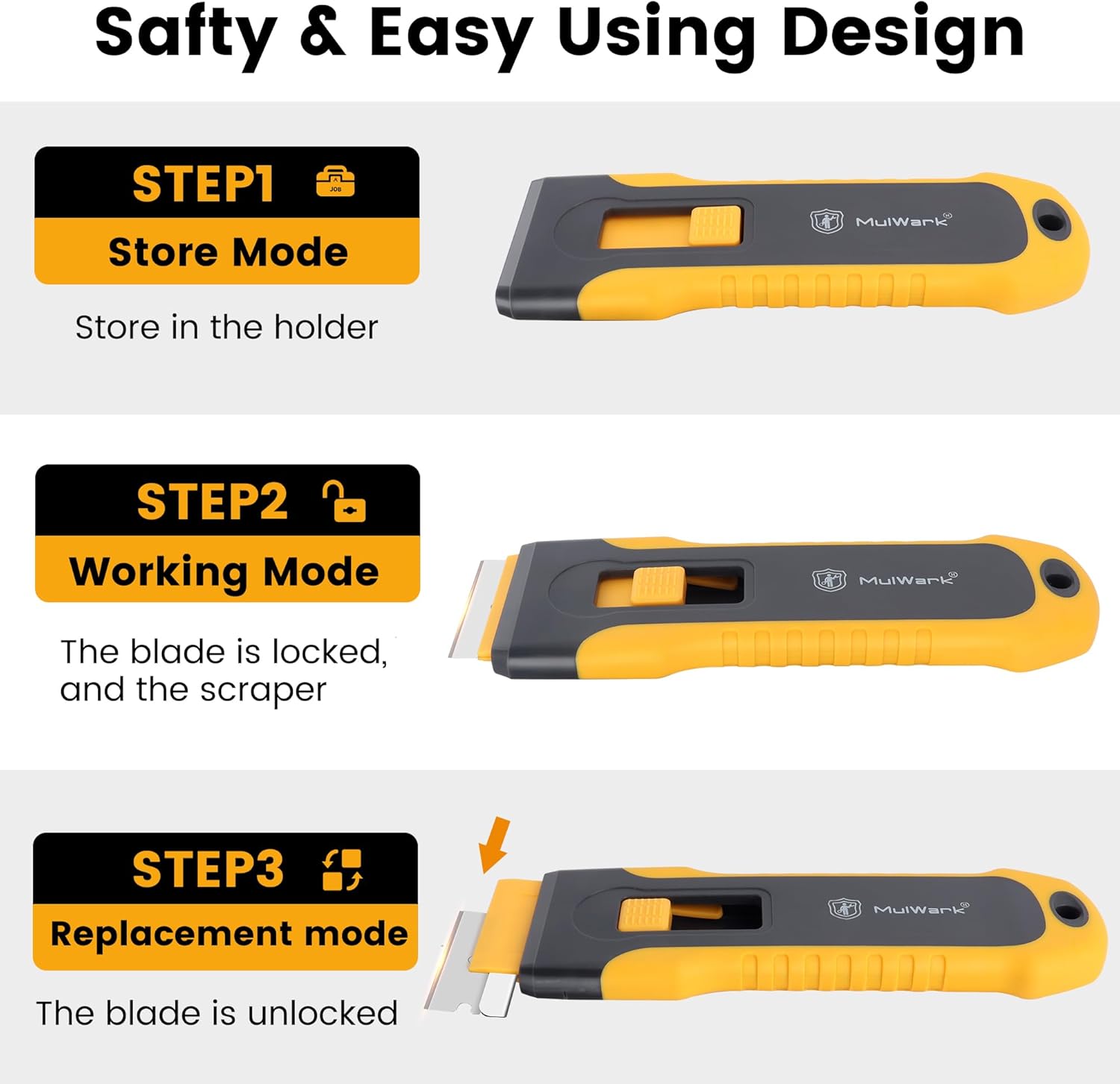 - 【 Heavy Duty Scraper tool 】MulWark 2 pack razor blade scraper tool set are made of high quality and durable design that can achieve heavy-duty use. The sturdy construction is reliable and long-lasting providing you with greater durability, ensuring you can easily tackle tough tasks. the glass stove top scraper remains fully compatible with off-the-shelf razor blades-no special orders, no compatibility headaches.