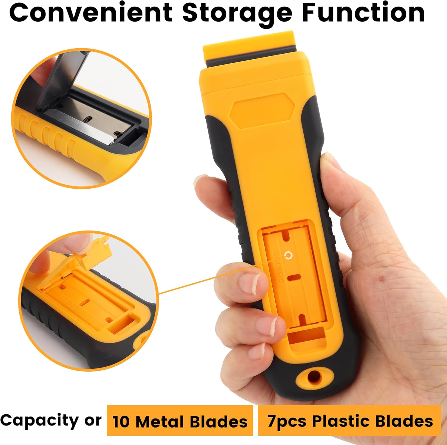 - 【 Upgrade Storages Design & 40 Extra Blades】 This razor scraper tool is with 21pcs premium stainless steel blades, 21pcs plastic blades and the scraper handle can storage max 10pcs metal blades or 7pcs plastic blade. It is suitable for uninterrupted cleaning. The next-generation storage blade features an integrated design that not only enhances the efficiency and speed of blade replacement but also reduces the risk of cuts during the process.