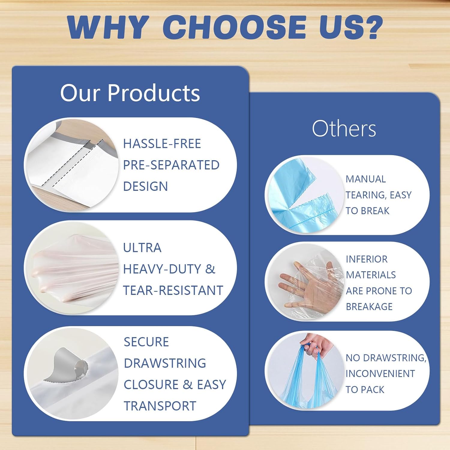 - Pre-Separated Bags: Each kitchen trash bag in the pack is individually separated, so you can quickly grab one without tearing or struggling with the roll. This thoughtful design saves you time and ensures a hassle-free experience every time