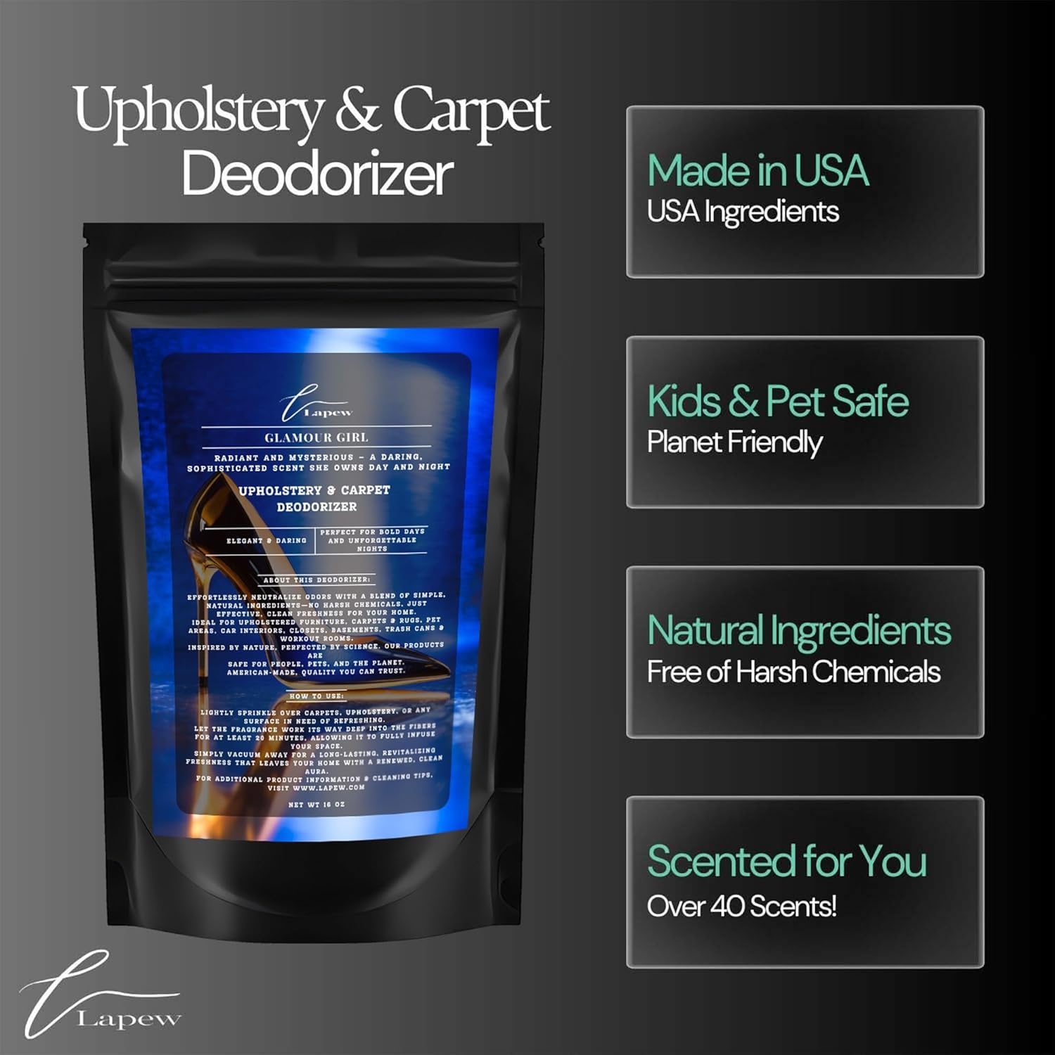 - Powerful Odor Eliminator for Strong Odors: Say goodbye to stubborn smells with the Lapew Glamour Girl Carpet Freshener Powder, specially formulated to tackle everyday room odors.