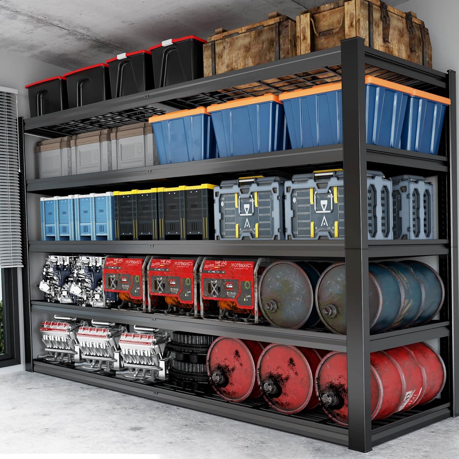 - ă5 Tier 65 "W x 79"H x 30"D Wide Storage Shelves heavy dutyăLarge heavy duty garage shelving is suitable for garage, warehouse, basement,Library, commerical, industrial etc. The 5 tier metal shelves for storage shelves expands your storage space, makes your home clean .